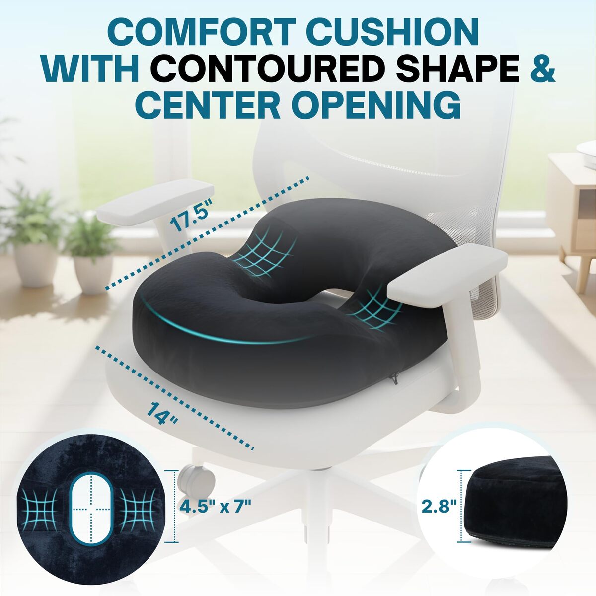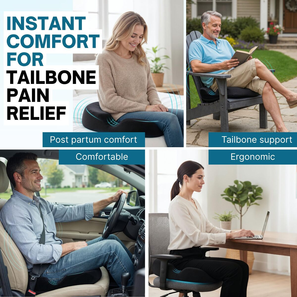 Bullet point: Relieve Pain Heal Faster ? Experience soothing relief from postpartum discomfort, tailbone pain, hemorrhoids, bed sores, and sciatica. This donut seat cushion for tailbone pain relief evenly distributes weight, reducing pressure on sensitive areas so you can recover in comfort