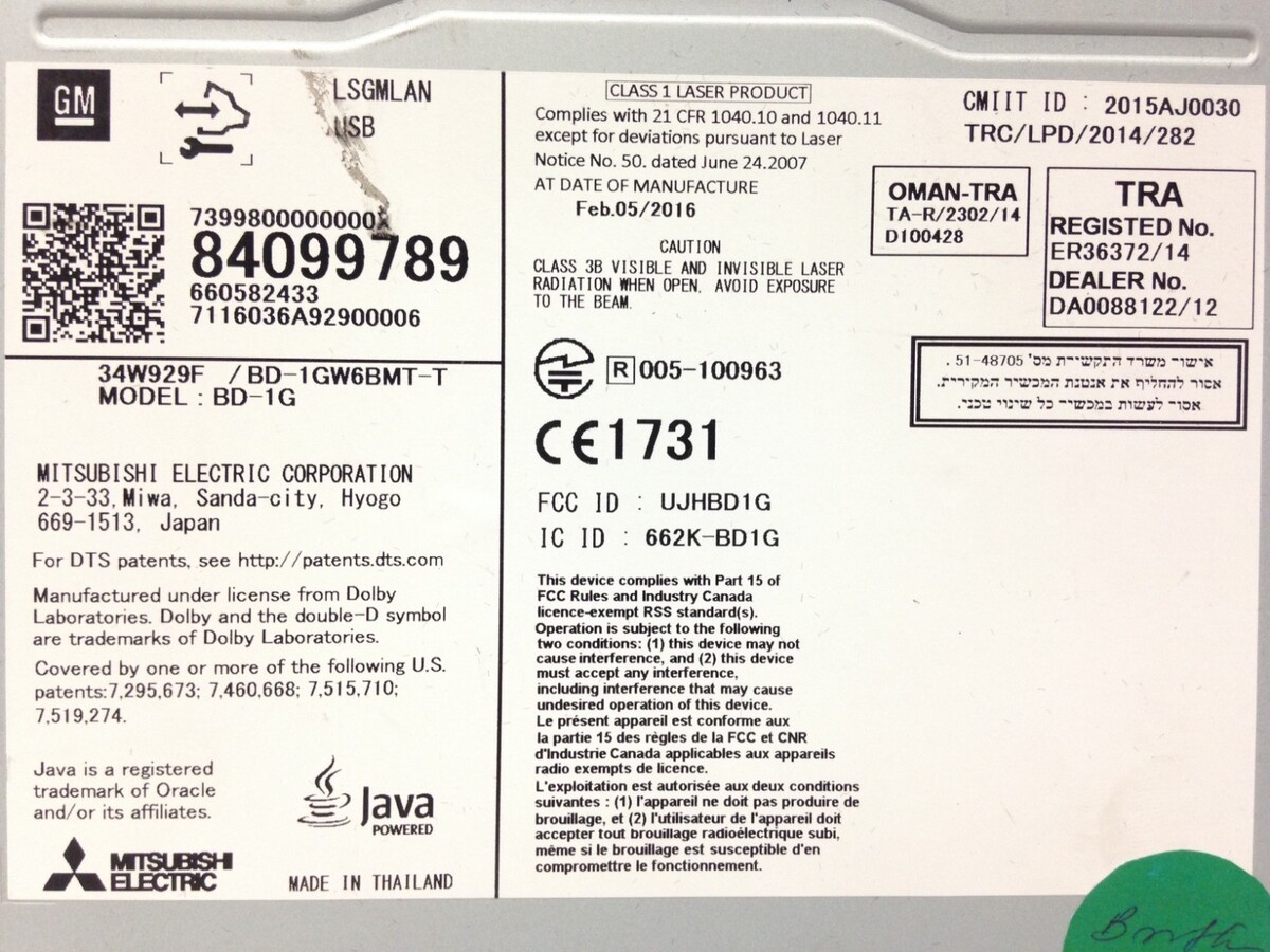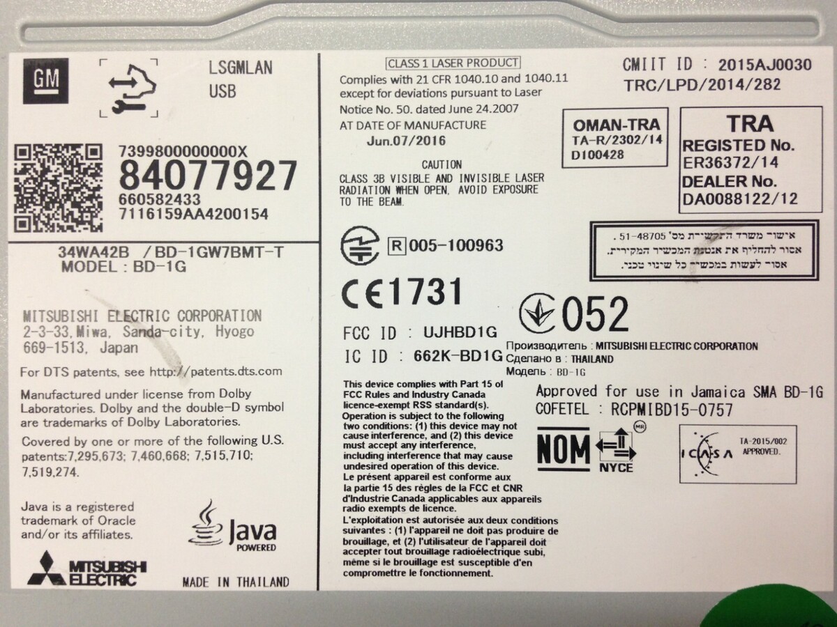 84099789, 84077927, Blu-Ray, GM, Bose |