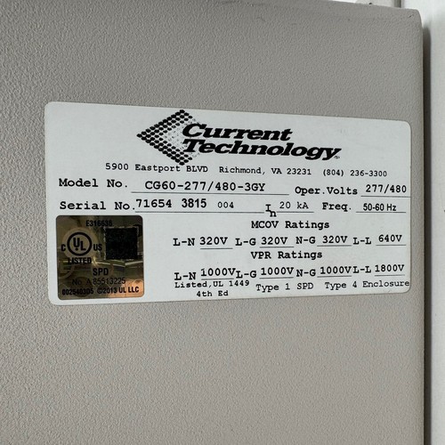 Current Technology Surge Protection Enclosure CG60-277/480-3GY Current Guard