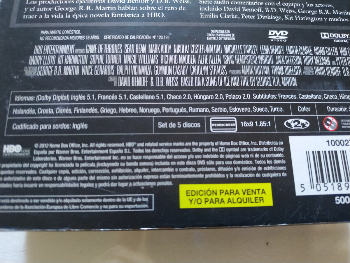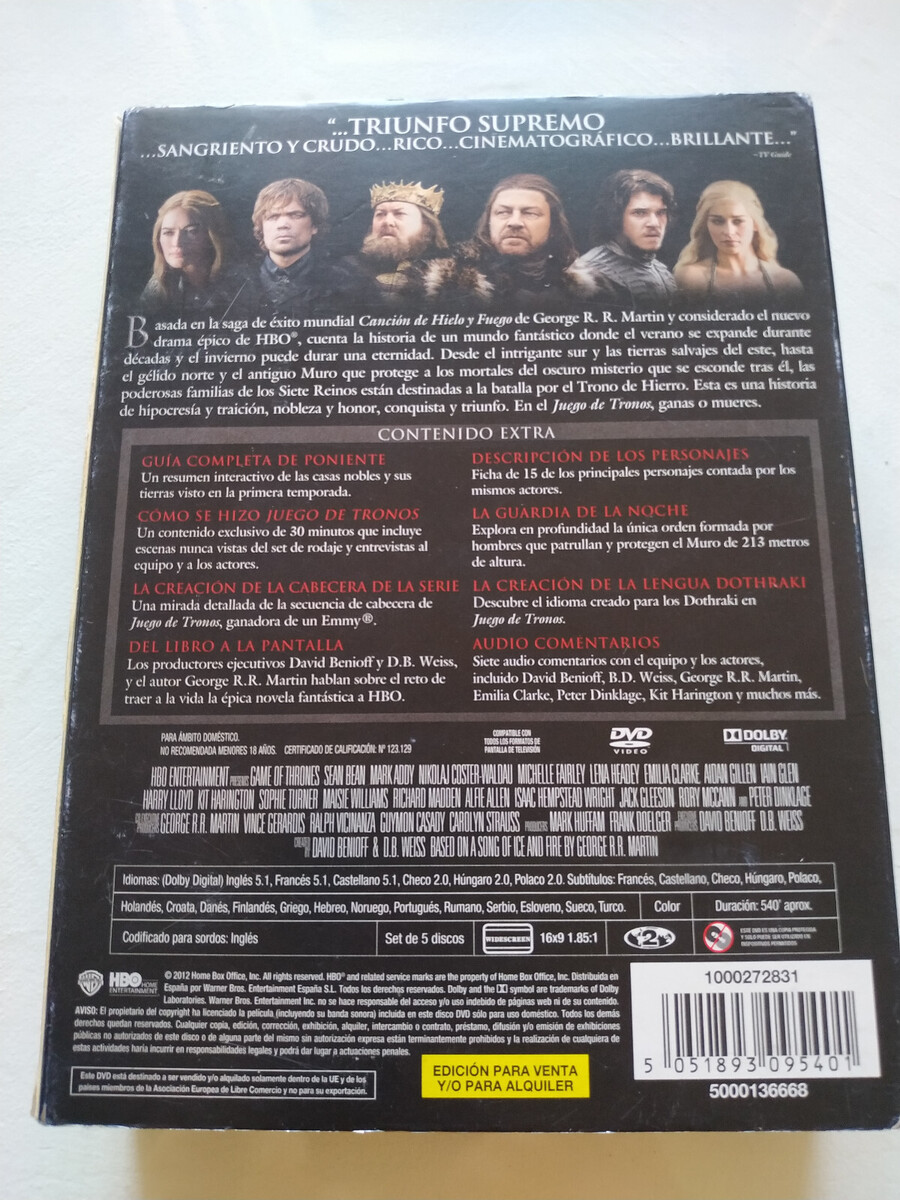 juego de tronos First Season 1 Complete HBO DVD Spanish English Region 2 2T