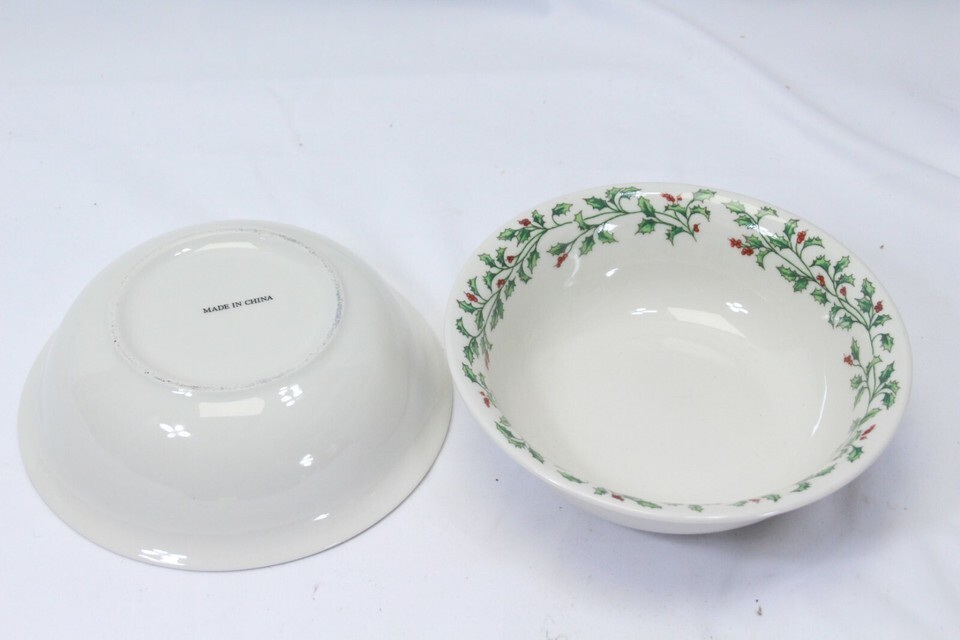 Holly Berry 16 Salad Plates and 2 Bowls Christmas Made in China Xmas