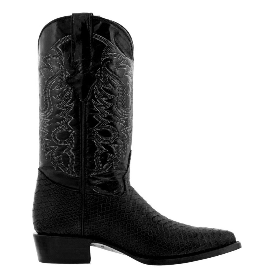Mens Black Cowboy Boots Snake Print Leather Western Botas Vaquero Rancho Size 12