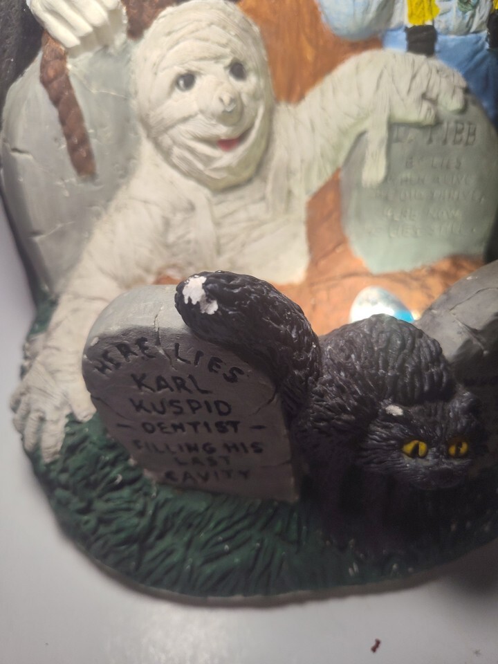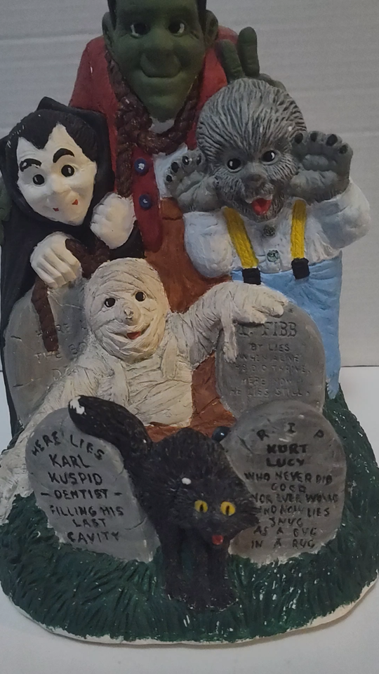 Vintage Halloween Ceramic Lamp Graveyard Werewolf, Frankenstein Dracula Mummy