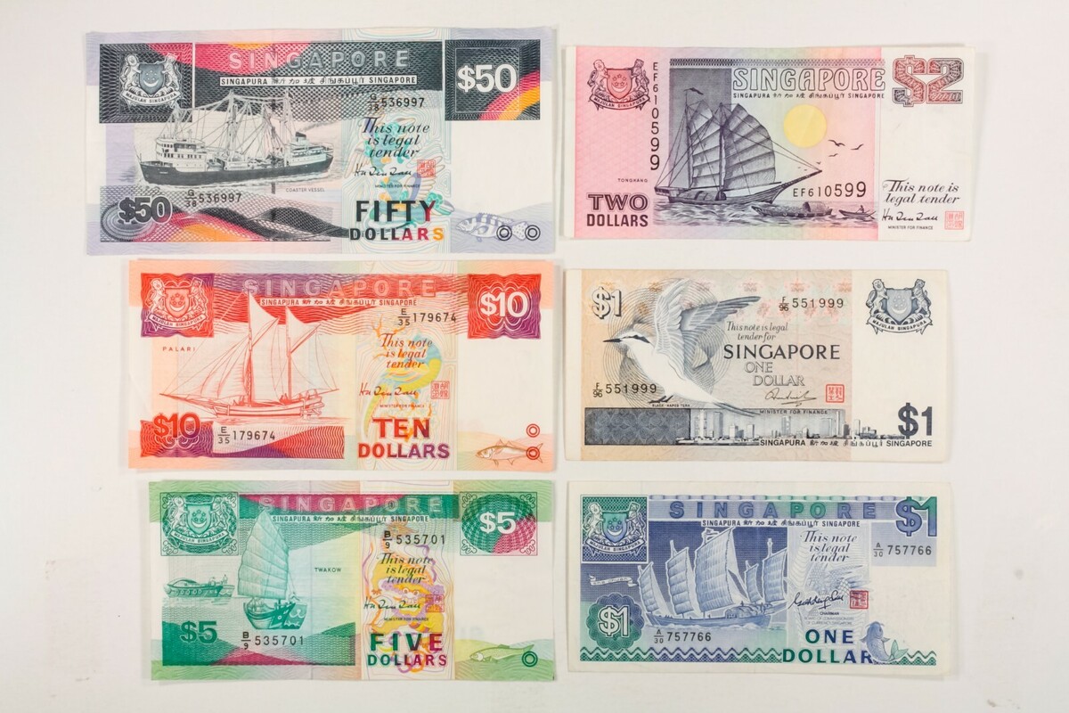 1976 - 1994 Singapore Notes. 6 Note Lot. XF - AU