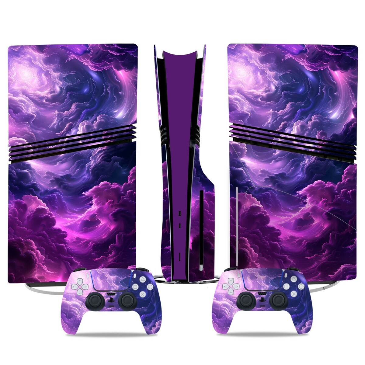 Fits PS5 PRO Disc Console & 2 Controller Purple Clouds Vinyl Wrap Skin Decal