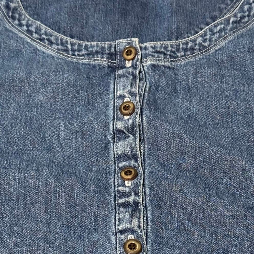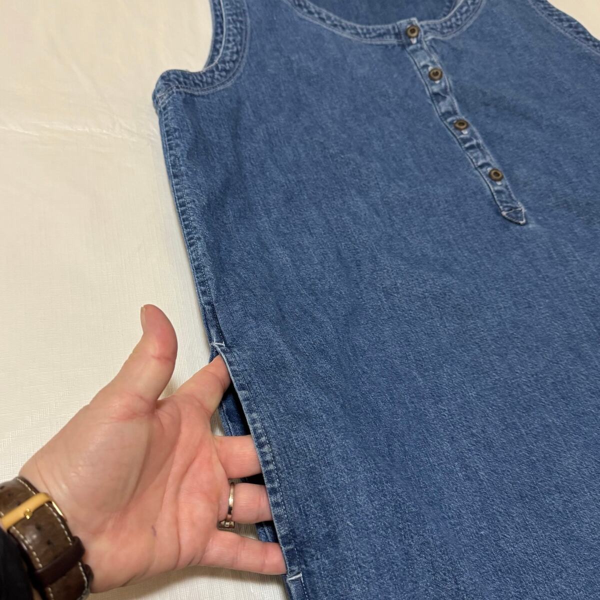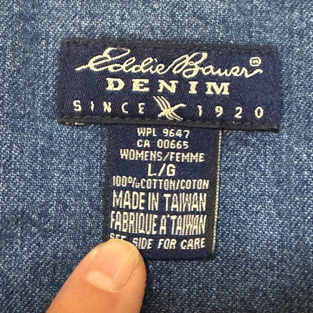 Eddie Bauer Blue Jean Denim Jumper Size Large Cottage Core Modest Relaxed Fit Knee Length Pullover A-Line Side Pockets