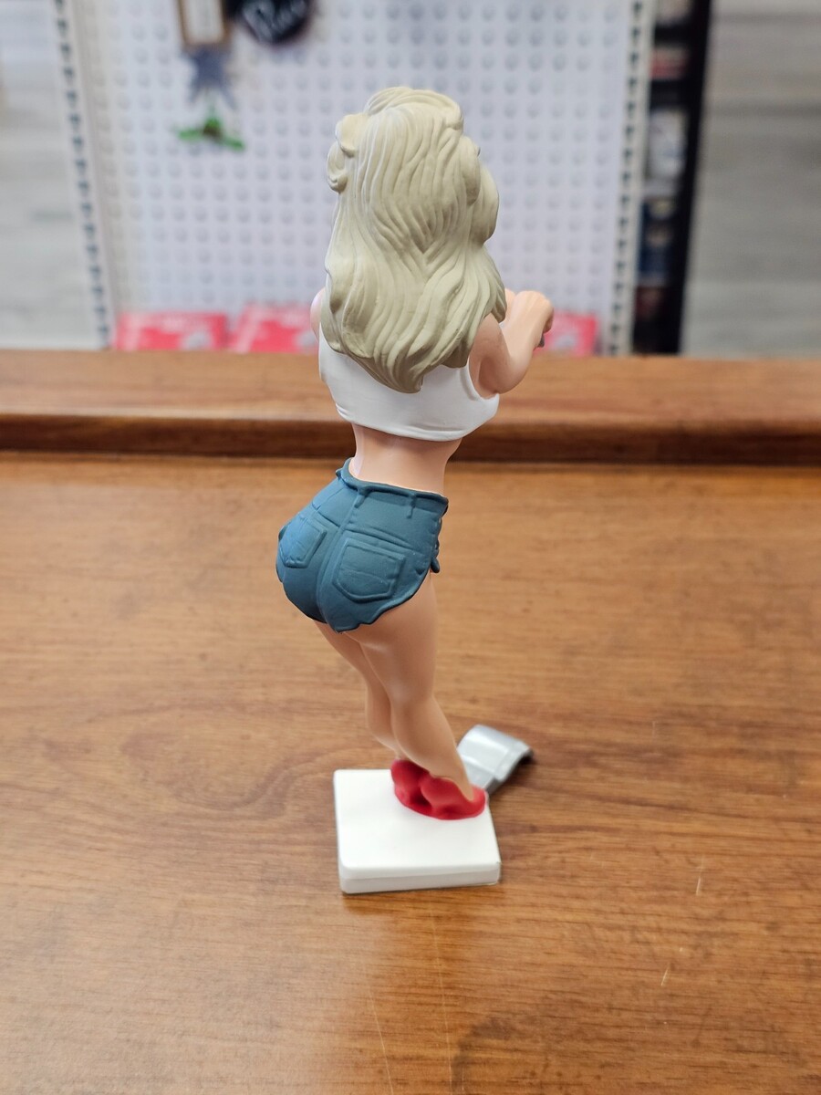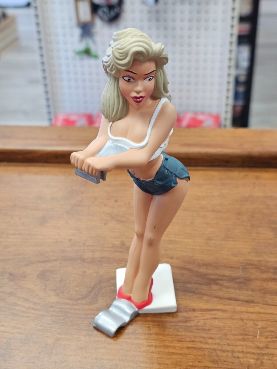 R Demars Ganz Bottoms Up Soda Beer Can Holder Sexy Blonde Girl Man Cave 7"