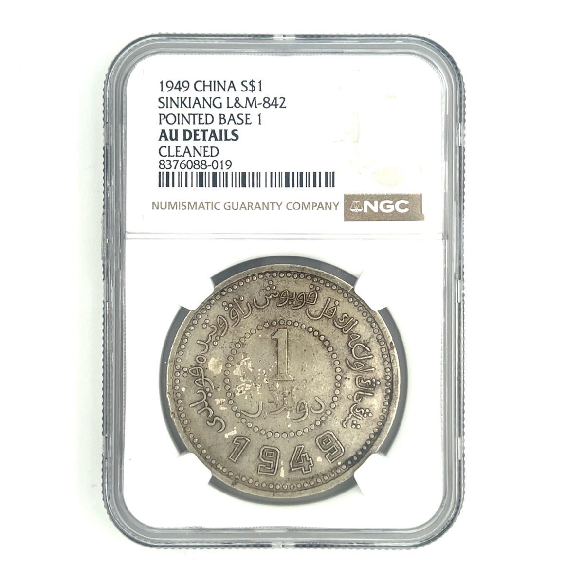 1949 China S$1 Dollar Sinkiang L M-842 Spitze Basis 1 von NGC als au
