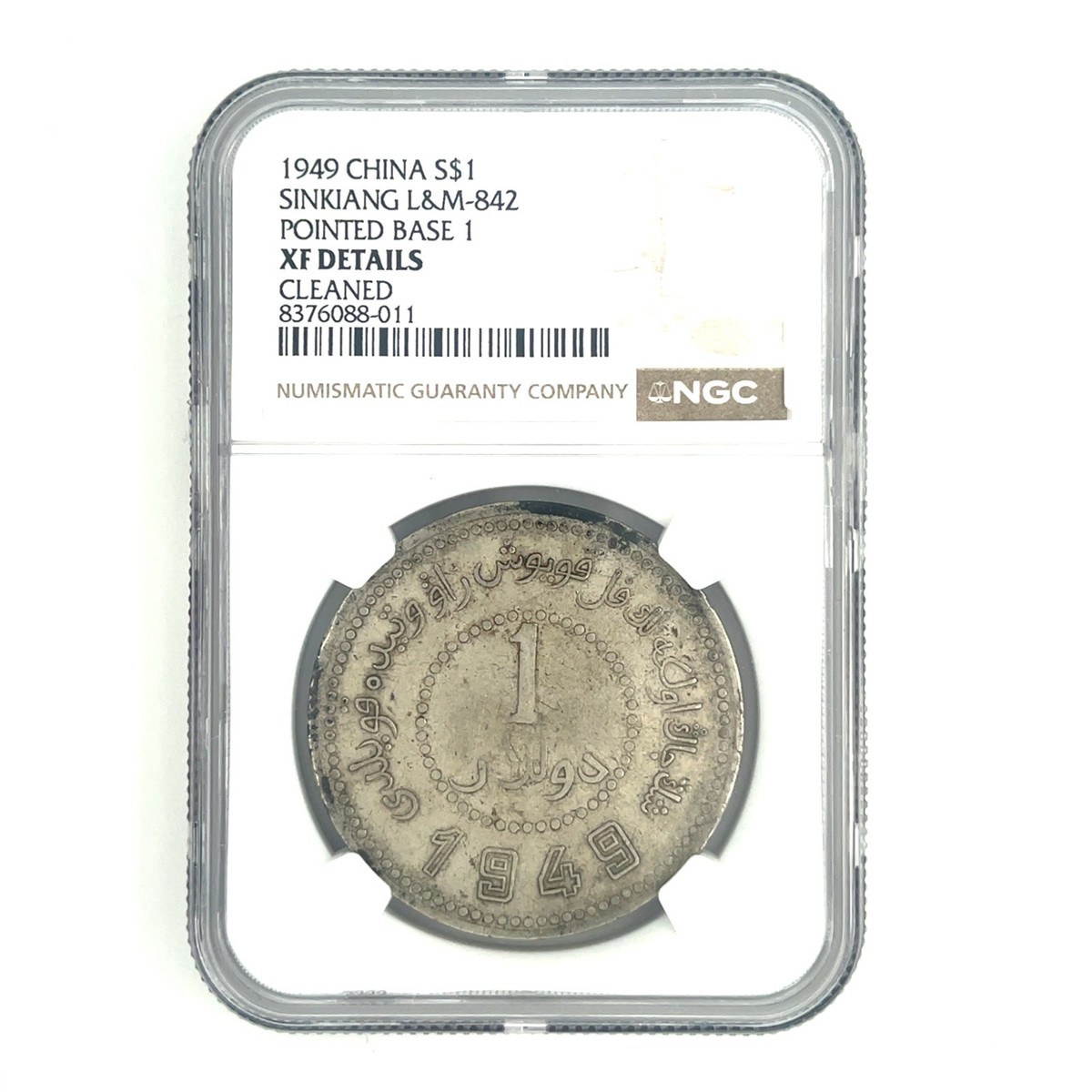 1949 China S $ 1 Dollar Sinkiang L M-842 Speced Base 1 von NGC als XF-Details!