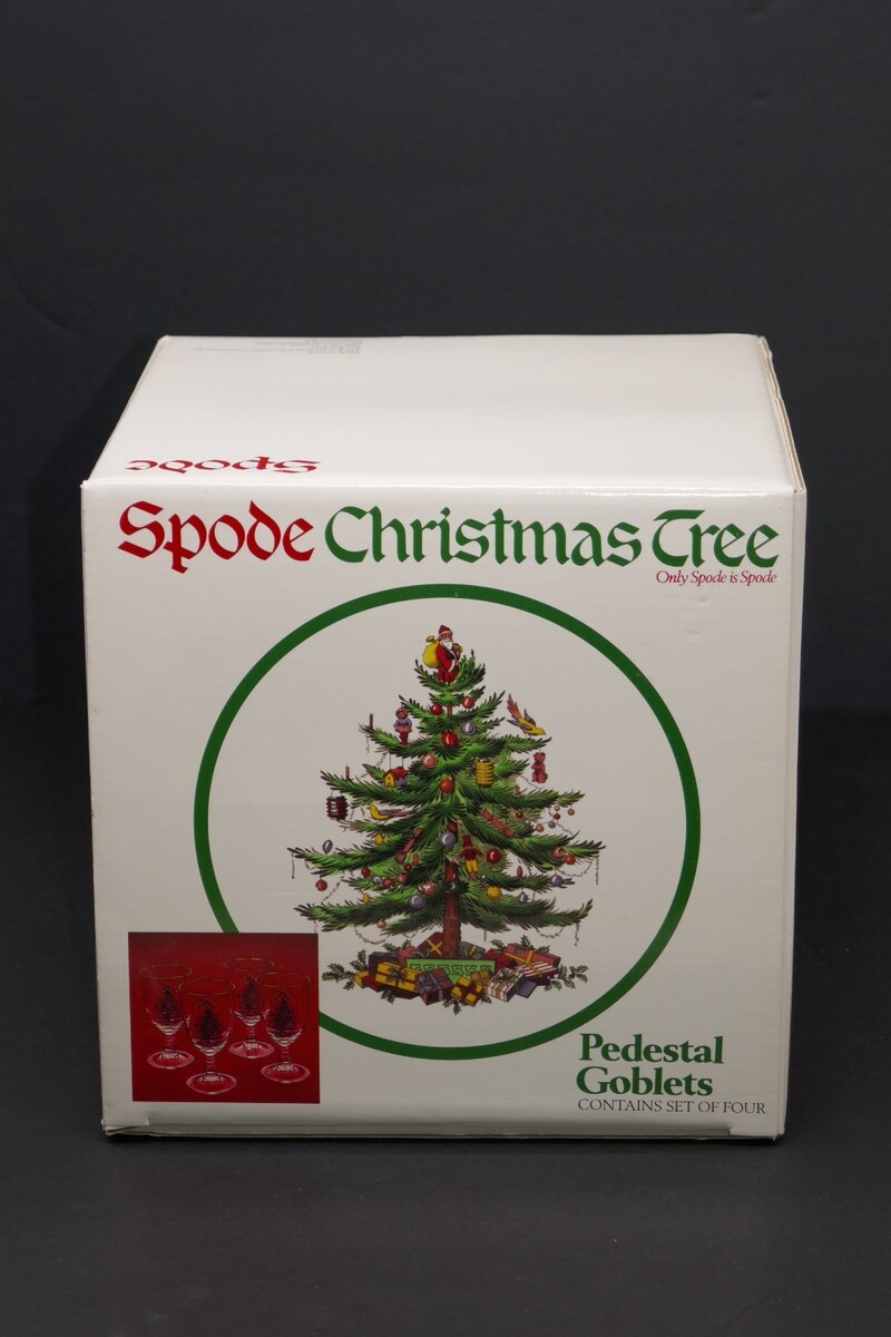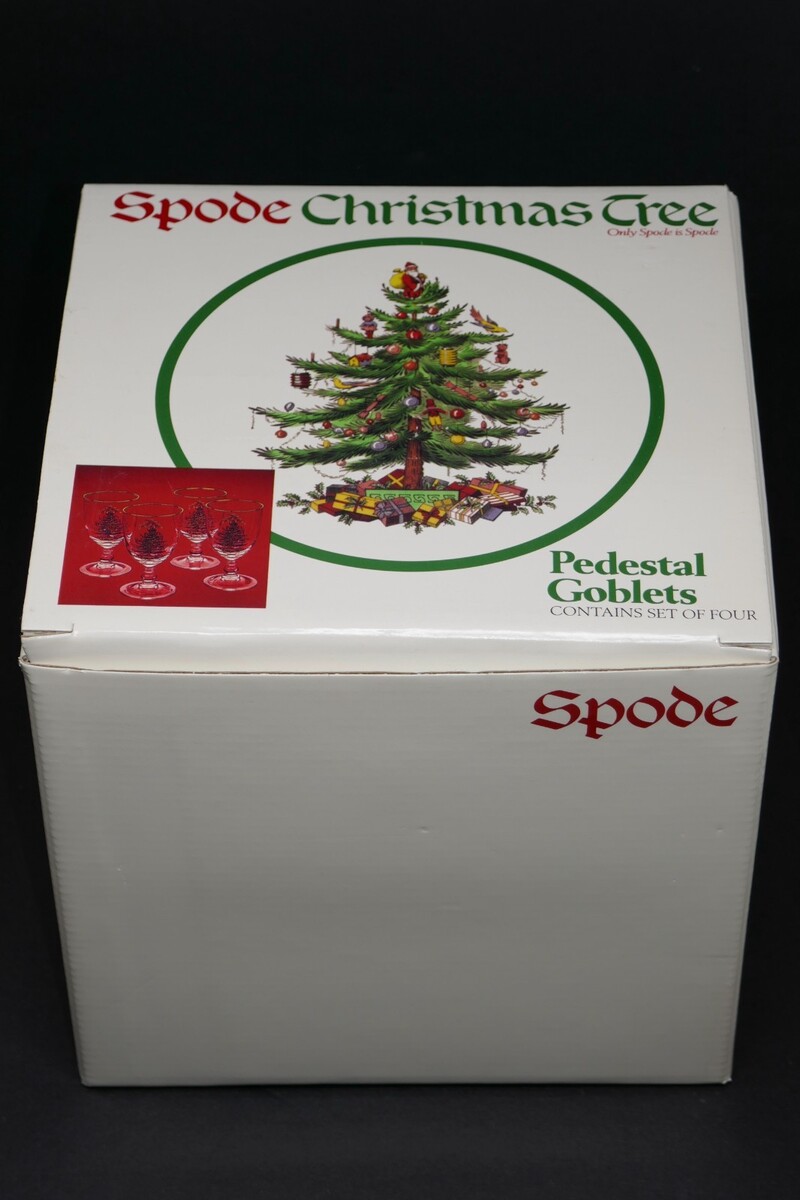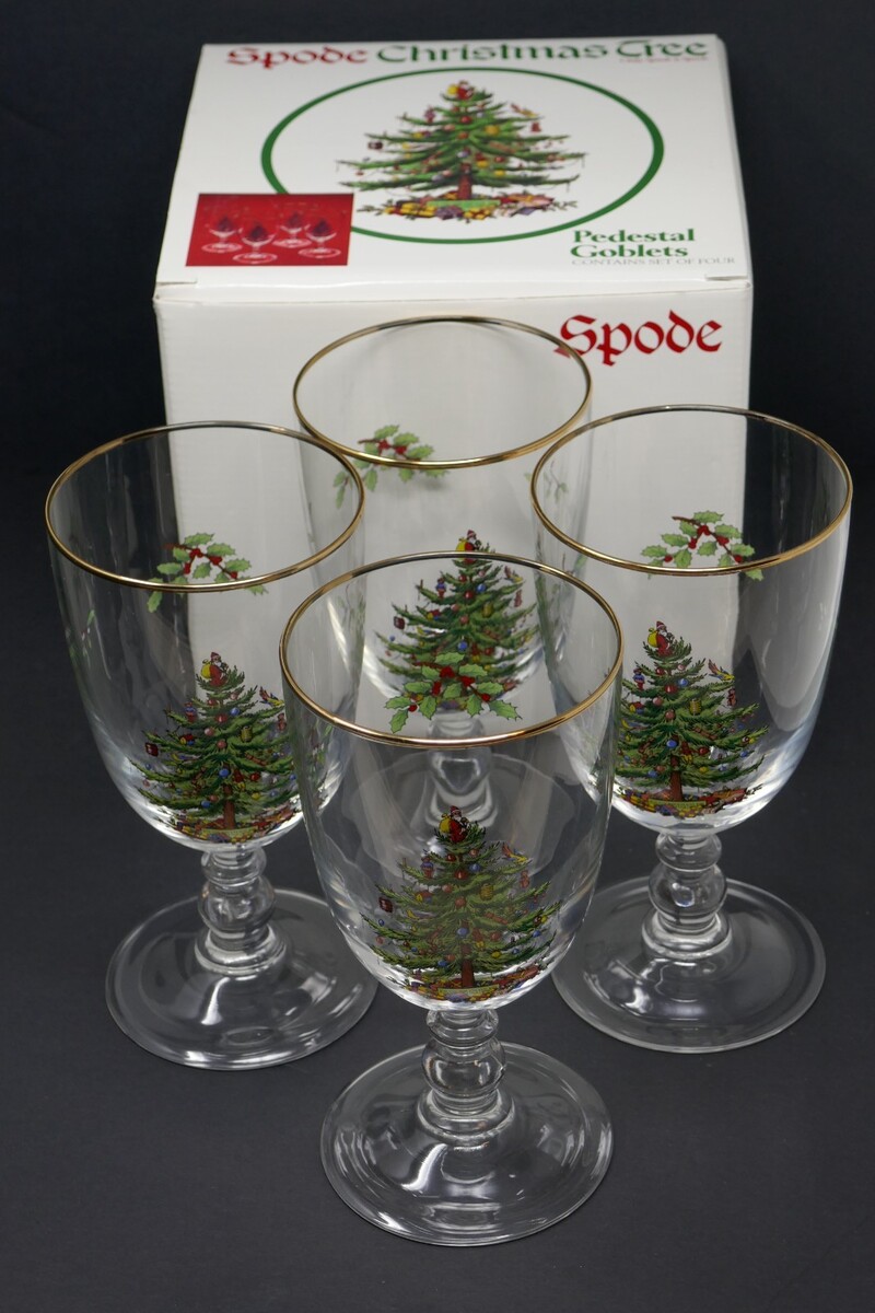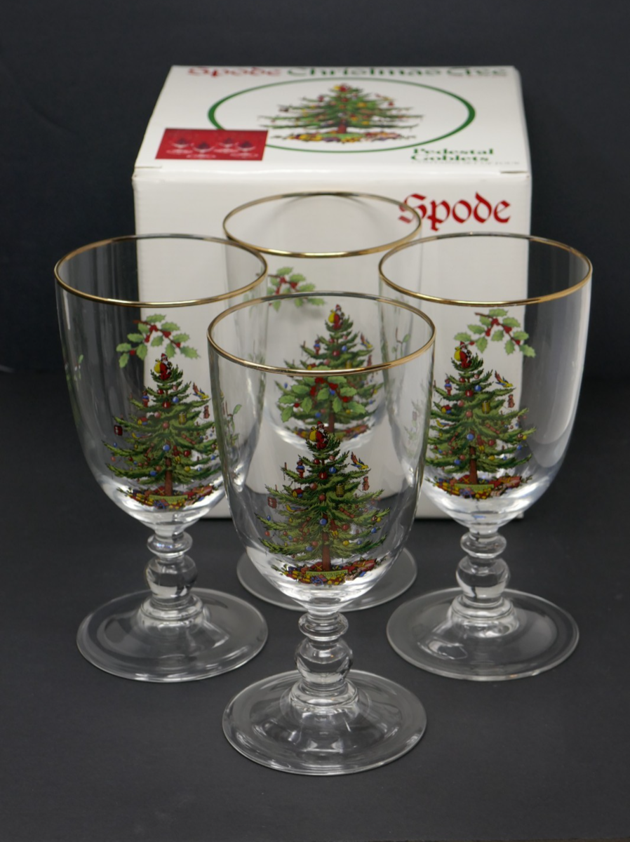 Spode Christmas Tree Gold Rim Glasses – Set of 4 Pedestal Goblets Glasses