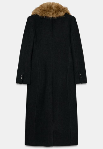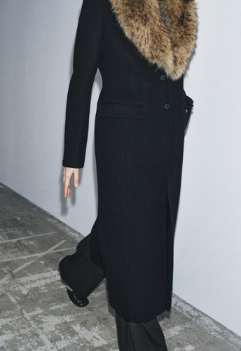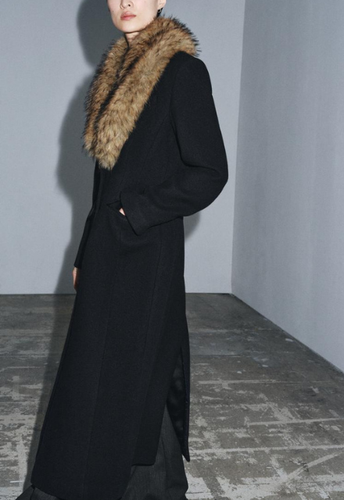 ZARA BNWT 2025. BLACK WOOL COAT FAUX FUR COLLAR. 3736/251/800