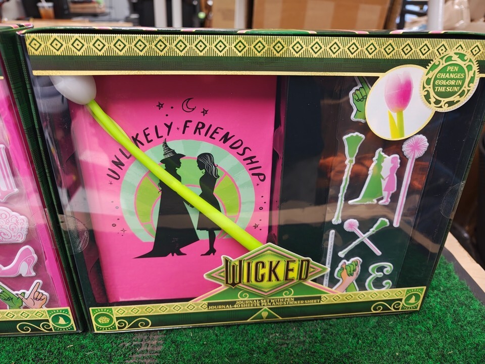 Get ready to be inspired and organized with this limited edition 2024 Wicked Elphaba Glinda Journal Set Of 2. This set includes a cardboard covered journal, a pen, and a set of stickers. The journals are perfect for anyone who loves to write and wants to stay organized.