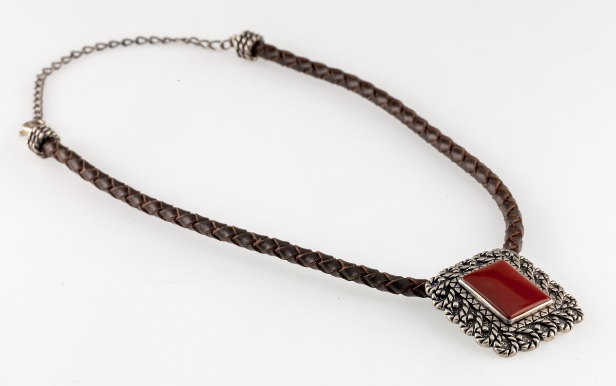 Carolyn Pollack Sterling Silver Carnelian Pendant Necklace on Braided Leather