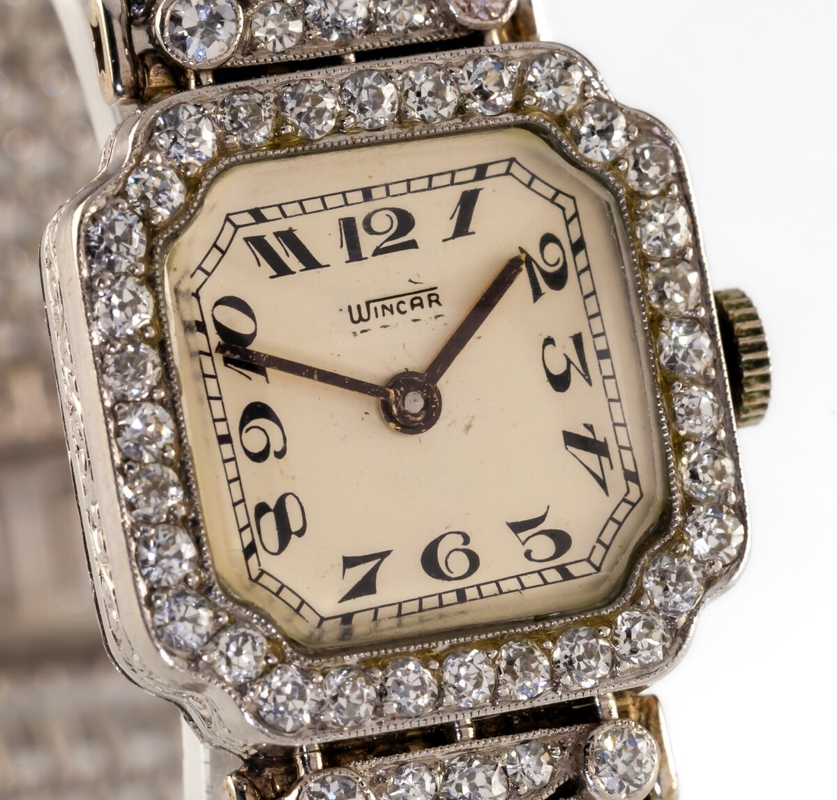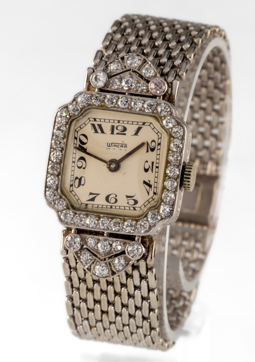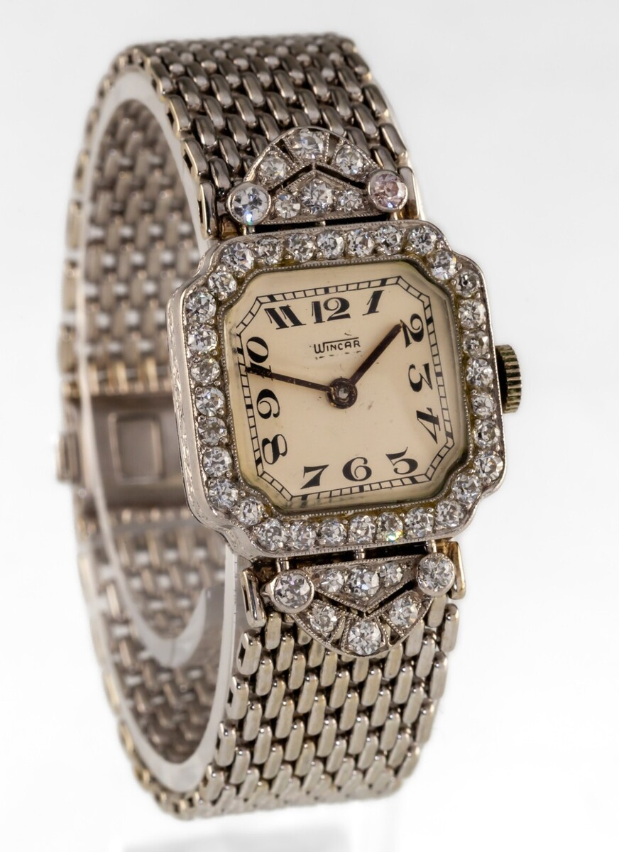 Wincar 18k White Gold and Platinum Diamond Watch w/ Quartz Movement
