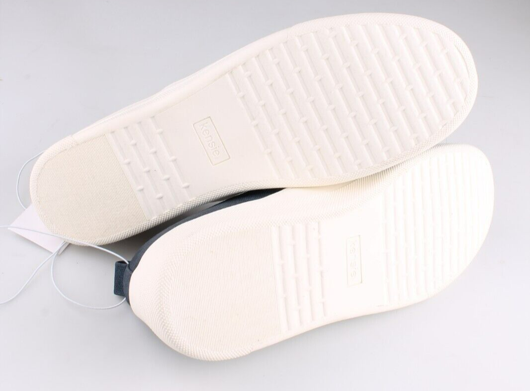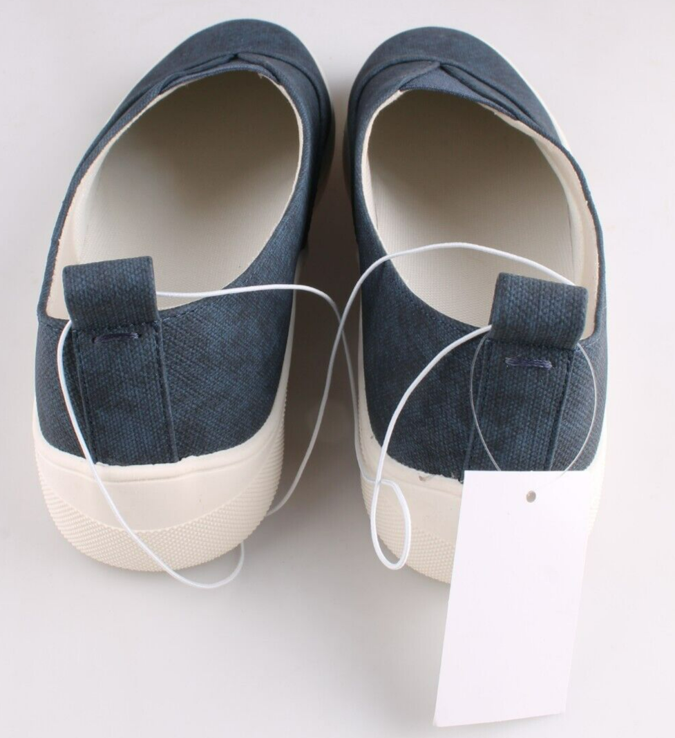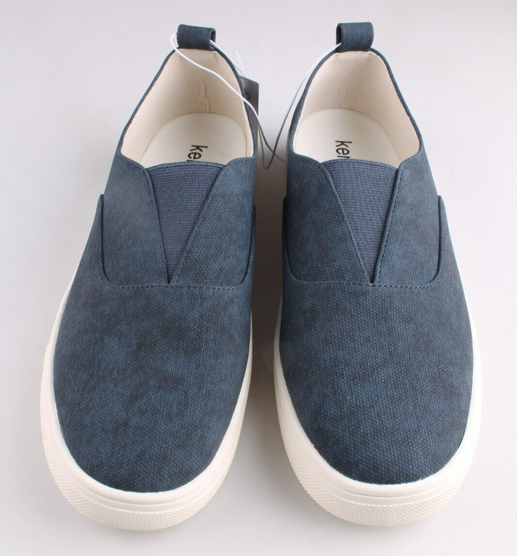 The product is a pair of Kensie Girl Salia navy slip-on shoes for women. Brand New in Box! These casual canvas shoes feature a slip-on style, making them easy to wear. Perfect for everyday comfort. Ideal for women looking for a stylish and convenient shoe option.