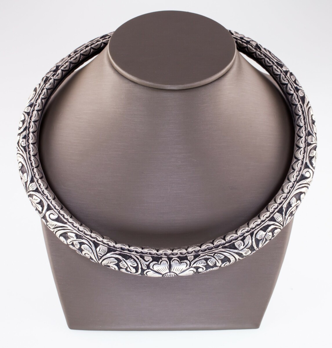 Antique Indian Hansuli Hand Carved Silver Choker Necklace