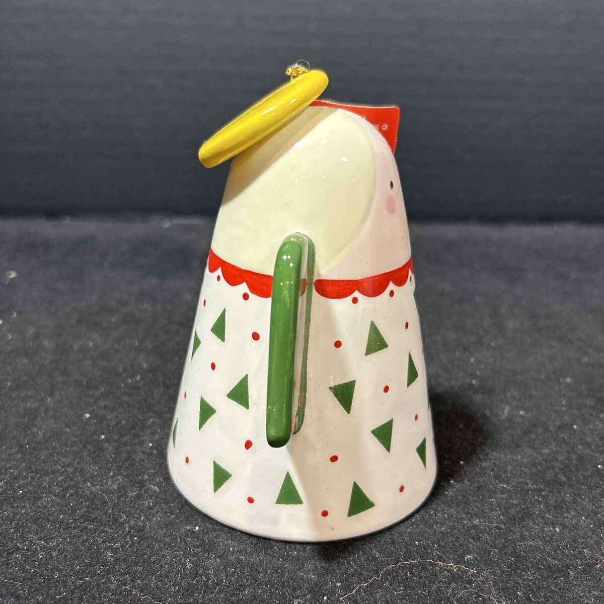 The angel is approximately 4? x 4?. The clapper is designed as legs and the toes just perk out when it?s hanging. Still has the original Silvestri tag on it.