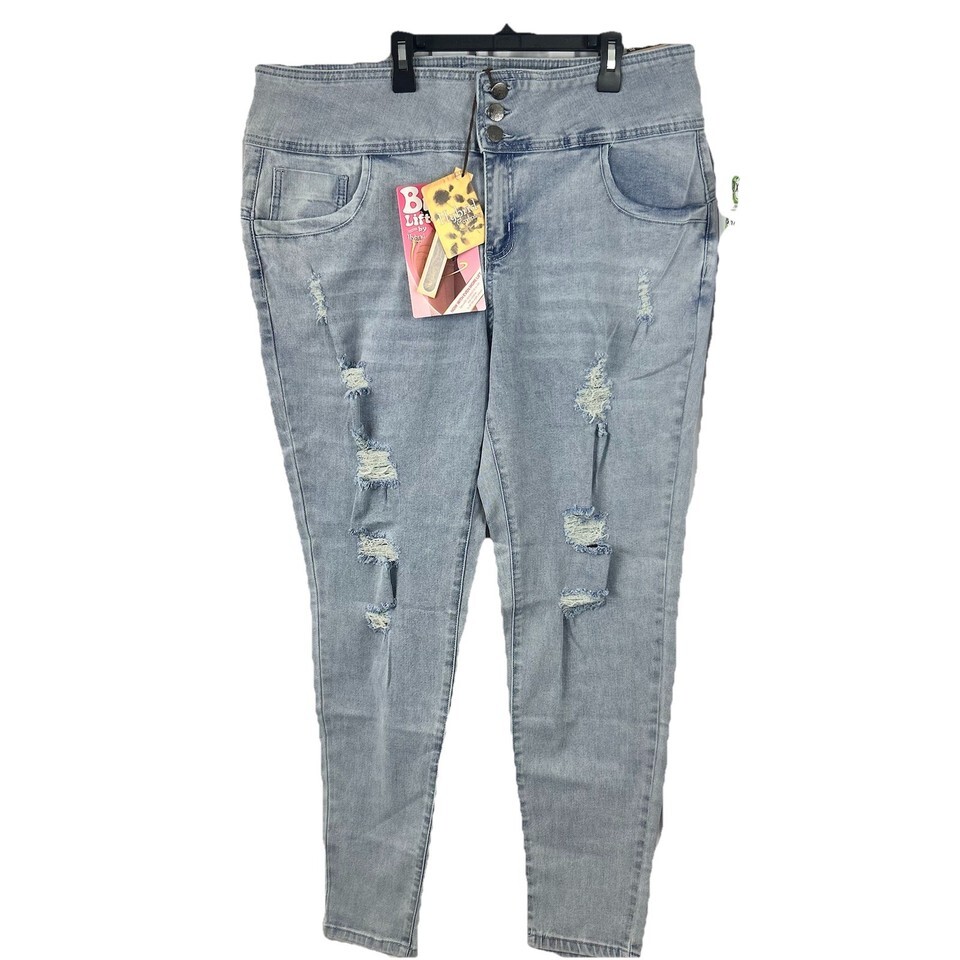 Hybrid Company Womens High Rise Light Blue Stretch Skinny Jeans Distressed 20