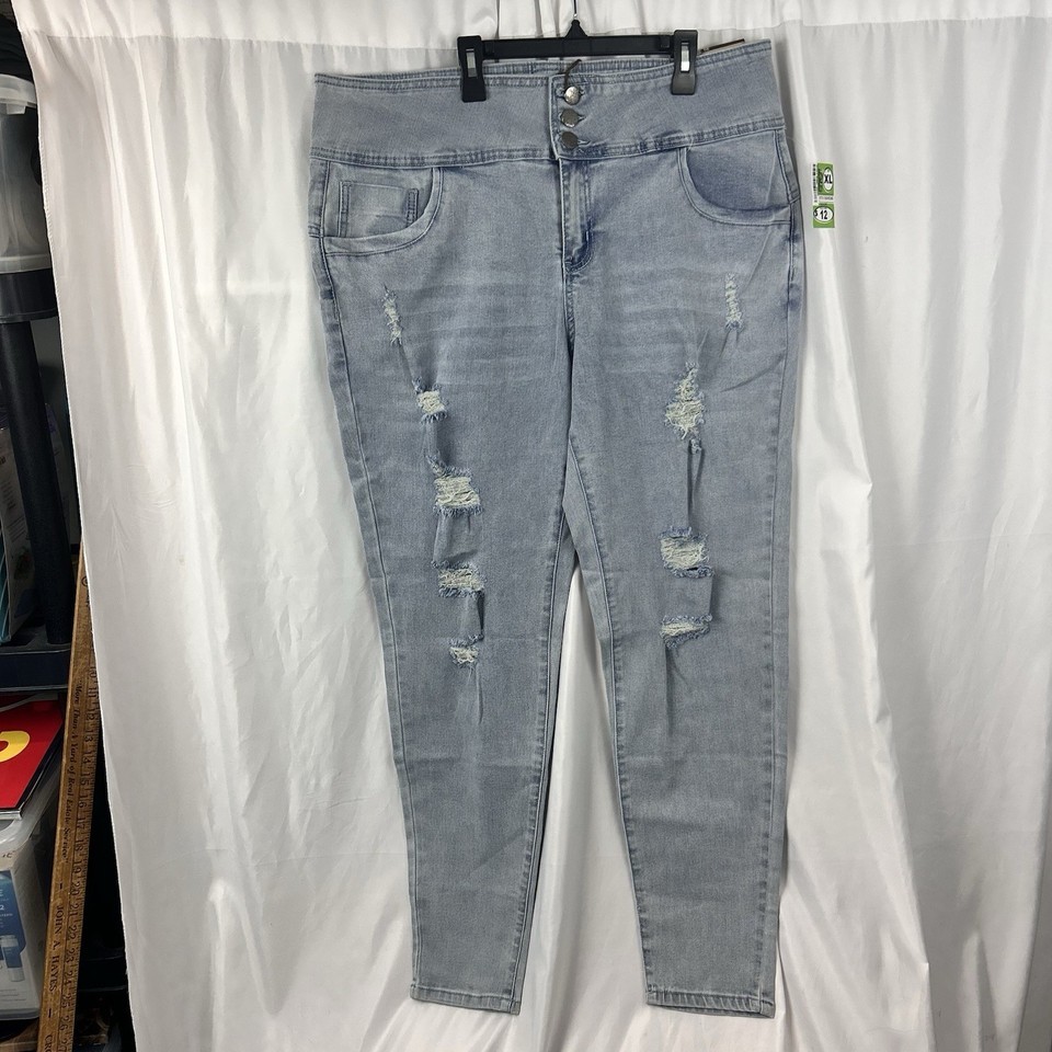 Hybrid & Company Womens High Rise Light Blue Stretch Skinny Jeans Distressed 20