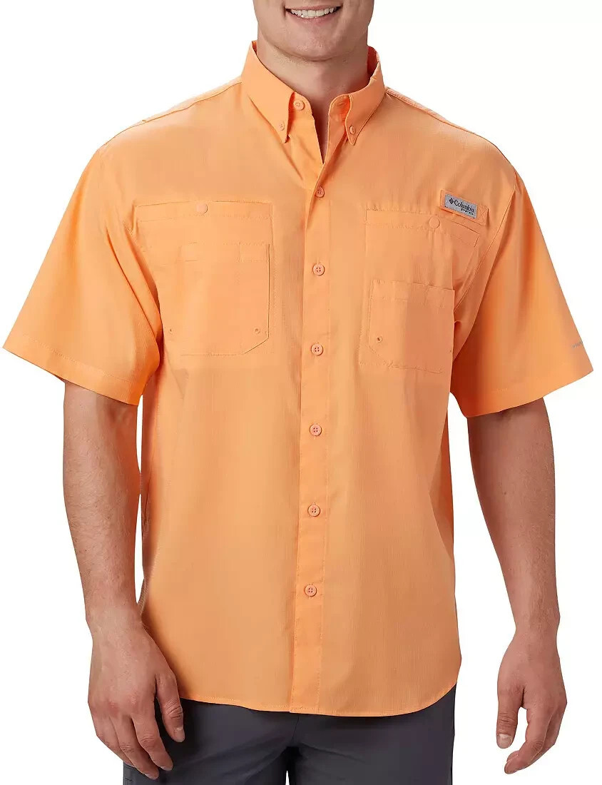COLUMBIA MENS PFG TAMIAMI II BUTTON UP SHORT SLEEVE FISHING SHIRT SMALL Orange