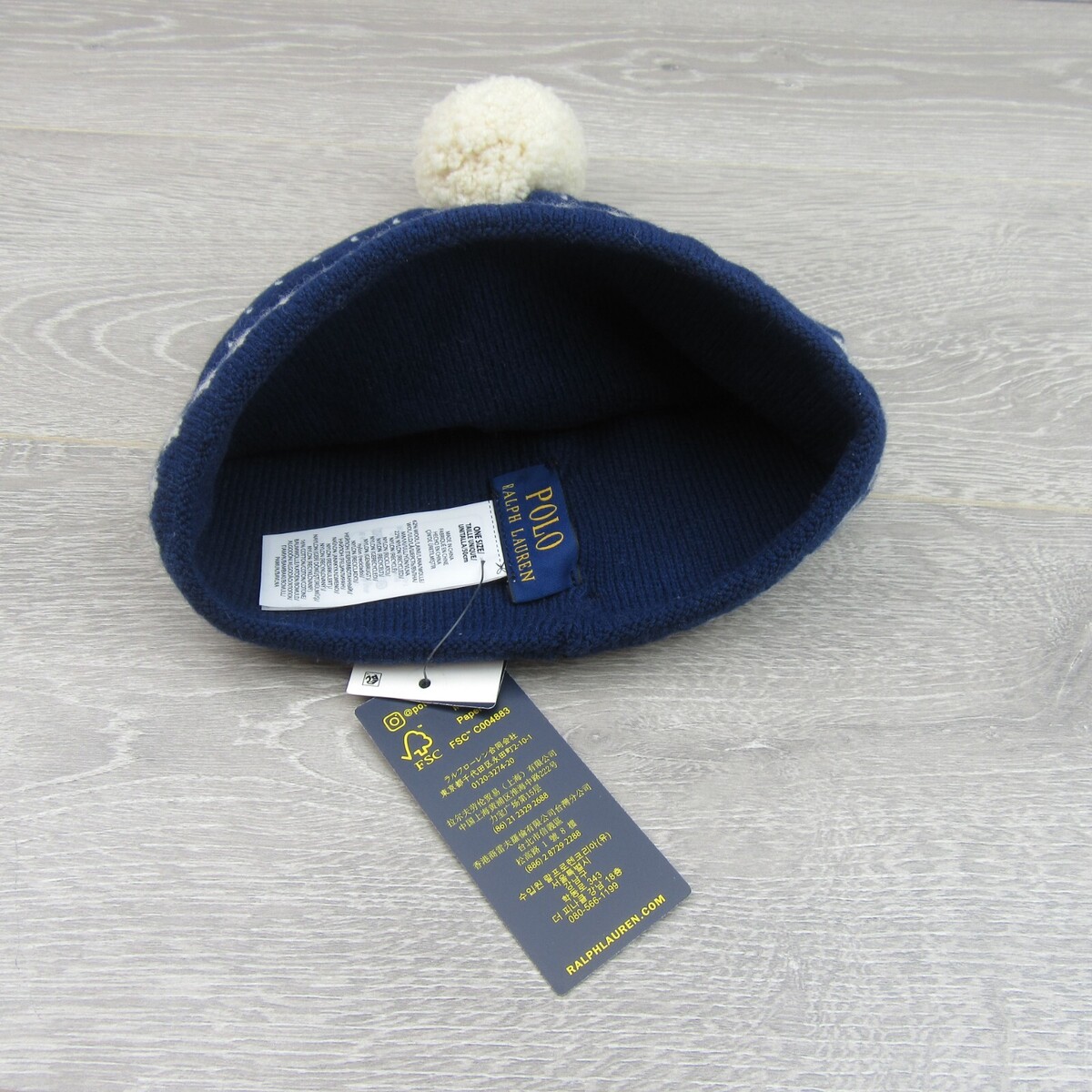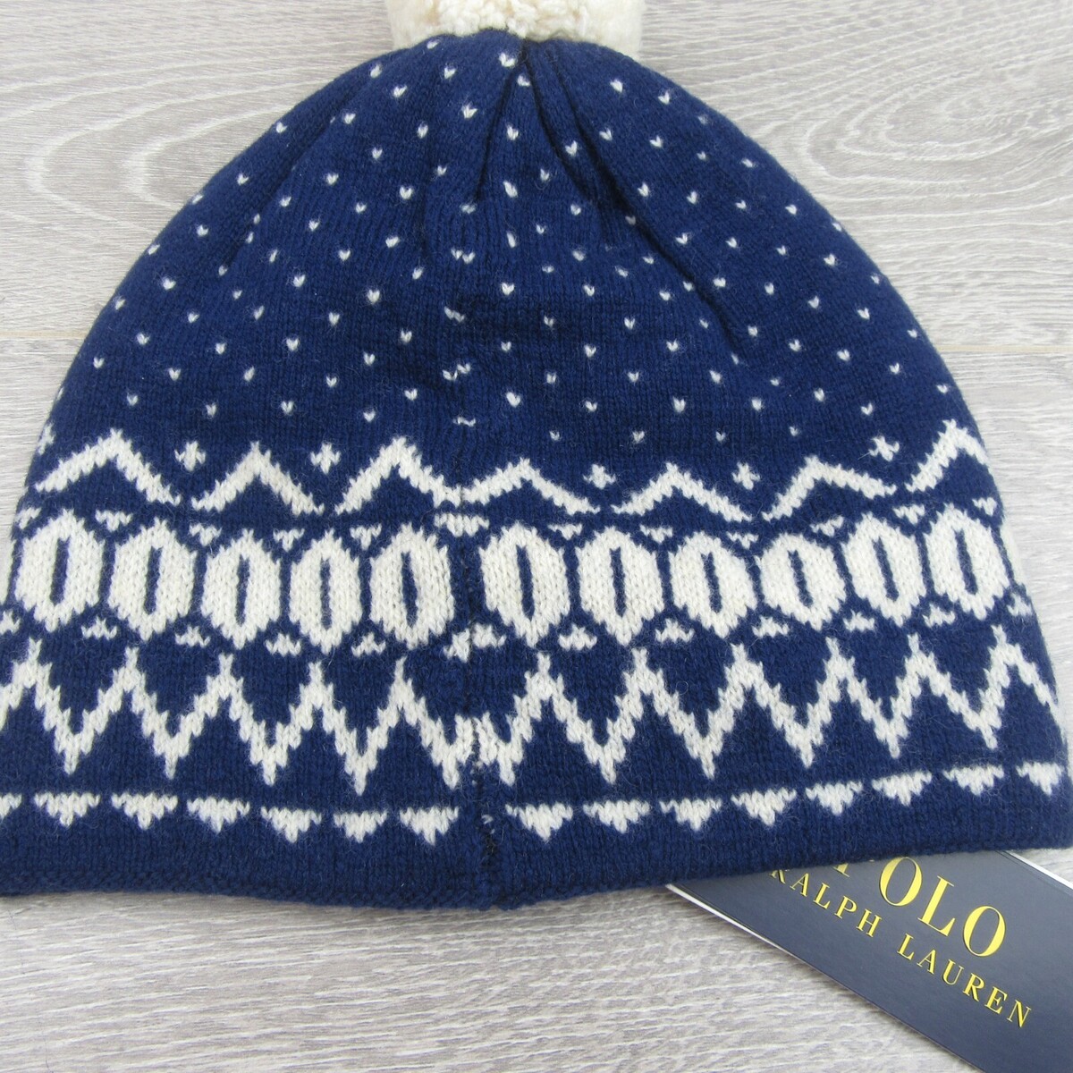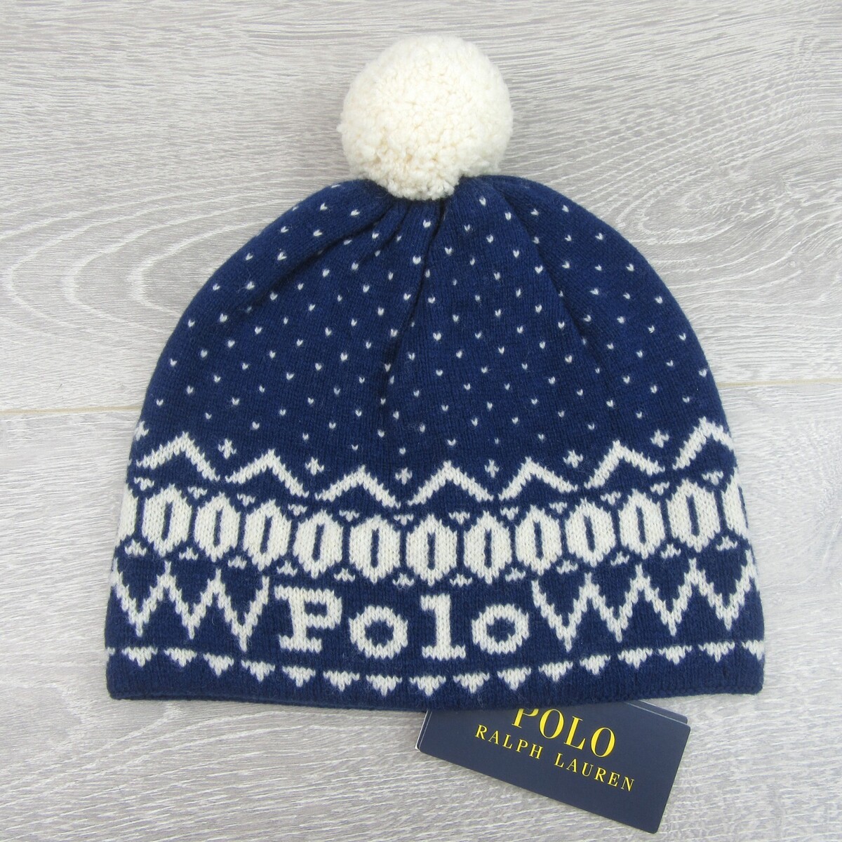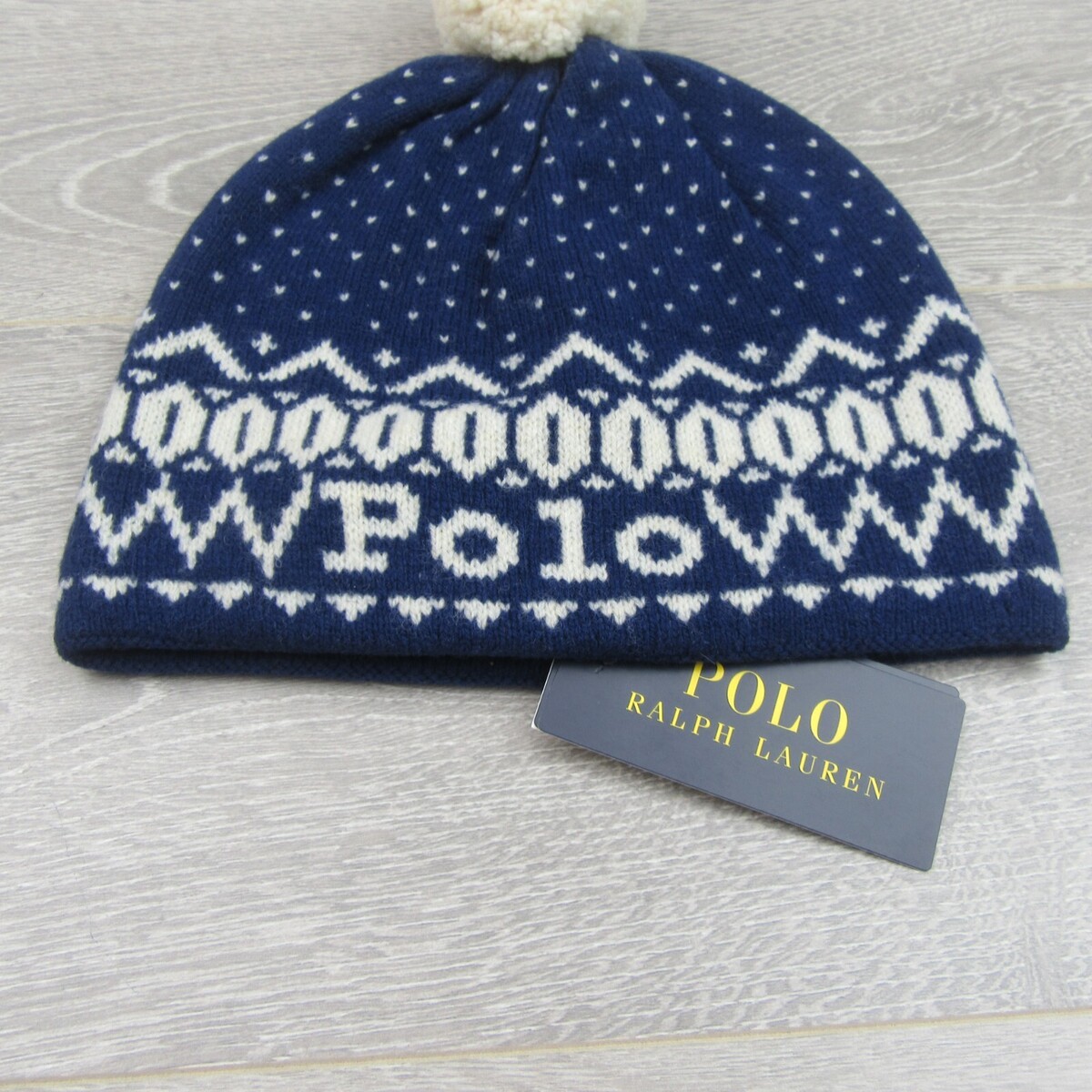Polo Ralph Lauren Pom Pom Beanie Cap One Size Navy White NEW