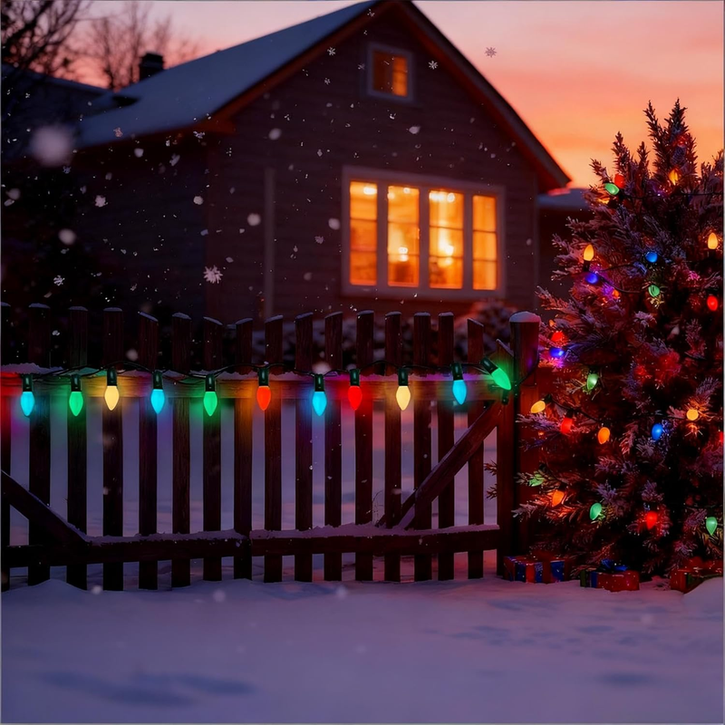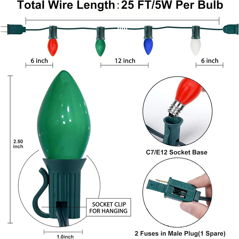 C7 Multicolor Christmas Lights Outdoor, 25Ft Vintage String Lights with 27 LEDs