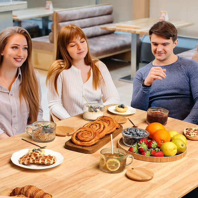 4Pcs Set Vintage Coffee Mugs Gifts for Women, Overnight Oats Containers with Bam