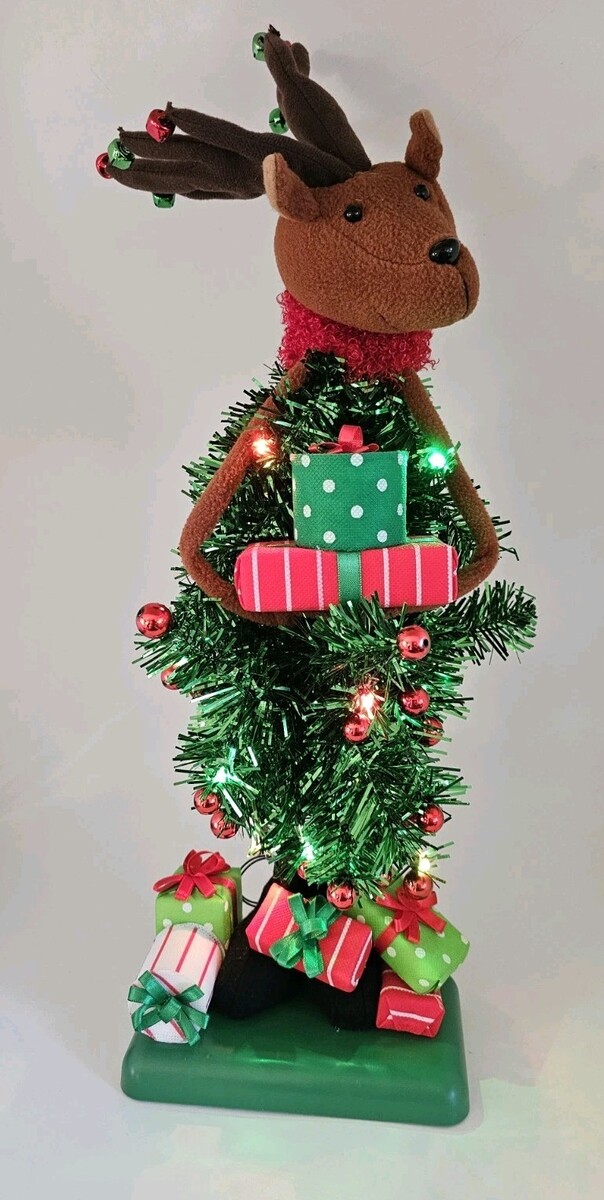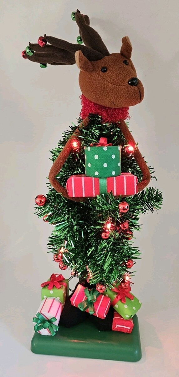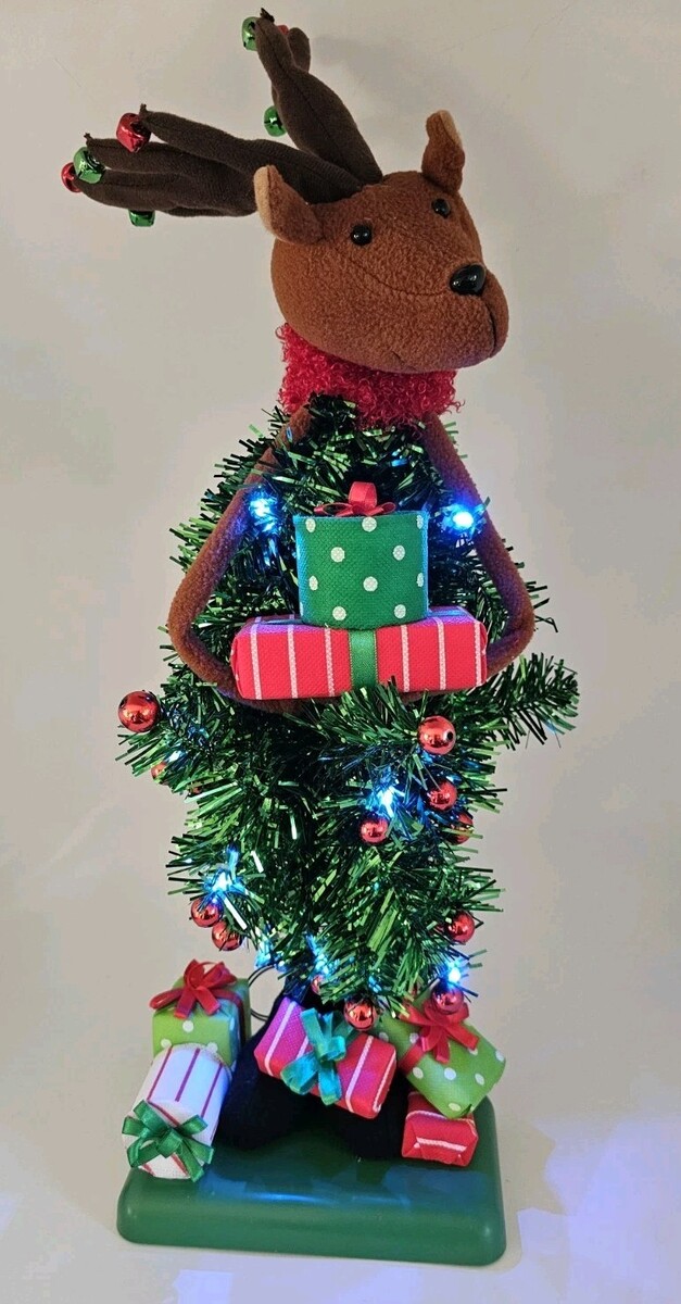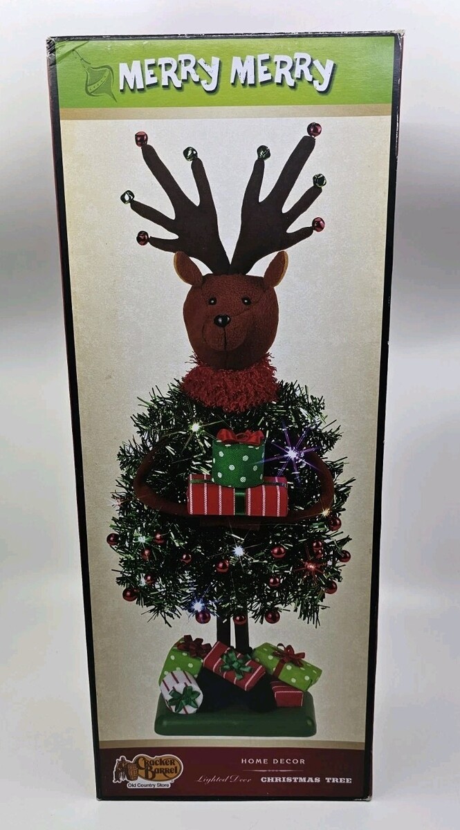 Cracker Barrel Lighted Reindeer Deer Christmas Tree w/ Changing Color Lights 22"