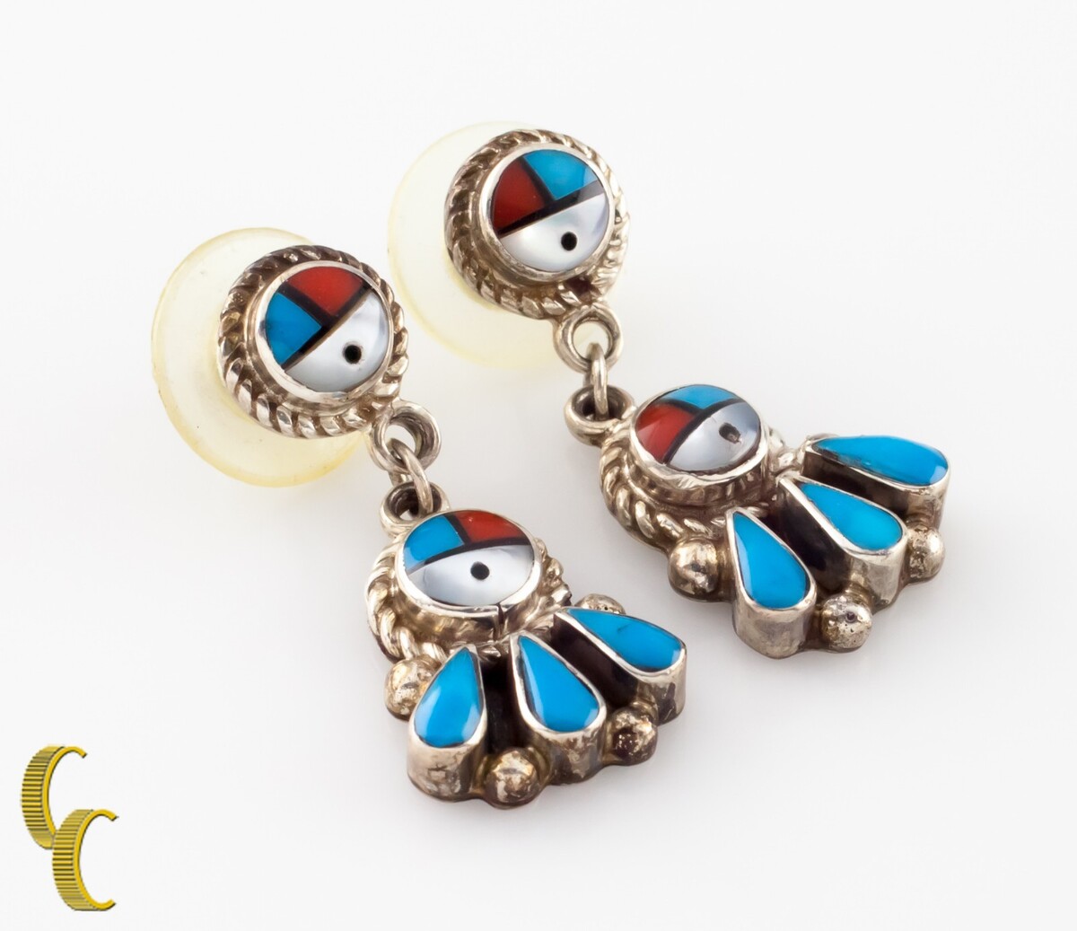 .925 Sterling Silver Coral Turqouise Dangle Earrings