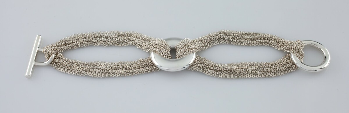 Tiffany Co. Sterling Silver Multi-Chain Bracelet w/ Circle Motif 6.5" Long