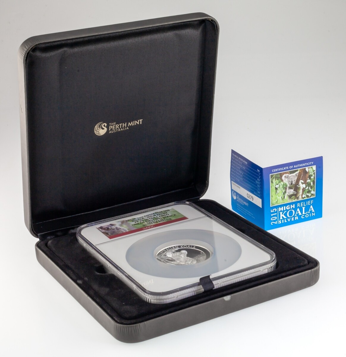 2015-P Australien 5 Oz. S $8 Silber Koala Hoch Relief NGC PF70 Ultra Cameo COA