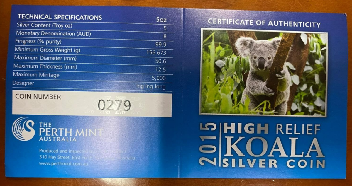 2015-P Australien 5 Oz. S $8 Silber Koala and 39 similar items