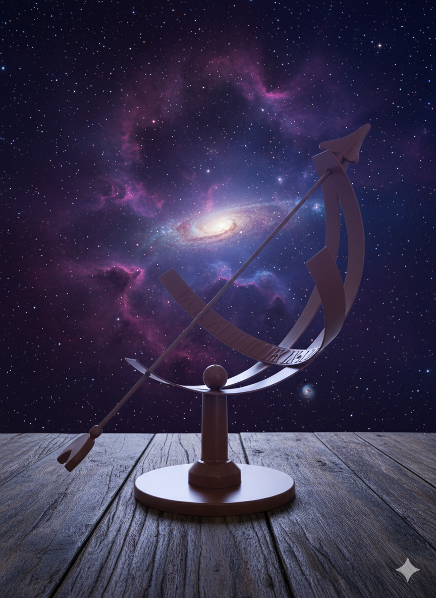 Design: Classic armillary sphere design, representing celestial lines and orbits