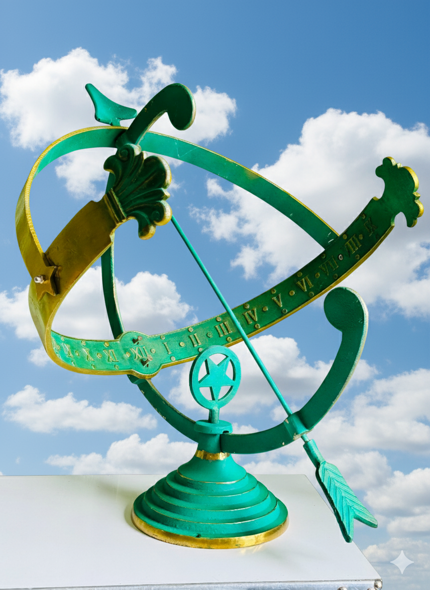 Solid brass and aluminum construction with a polished green finish for durability and classic charm Sundial Nautical Maritime Astrolabe Garden Decor