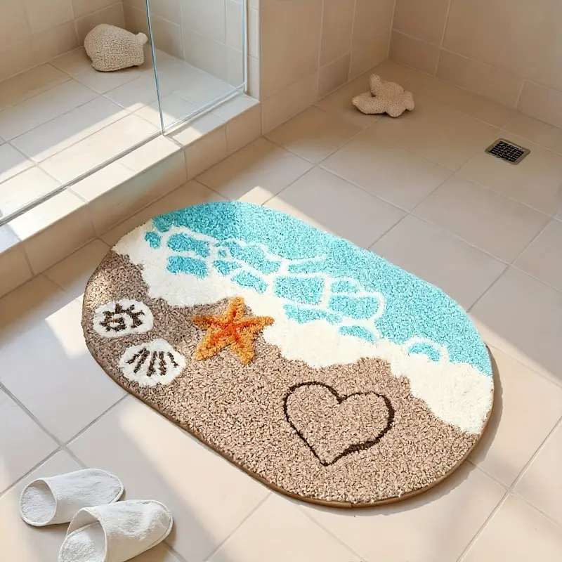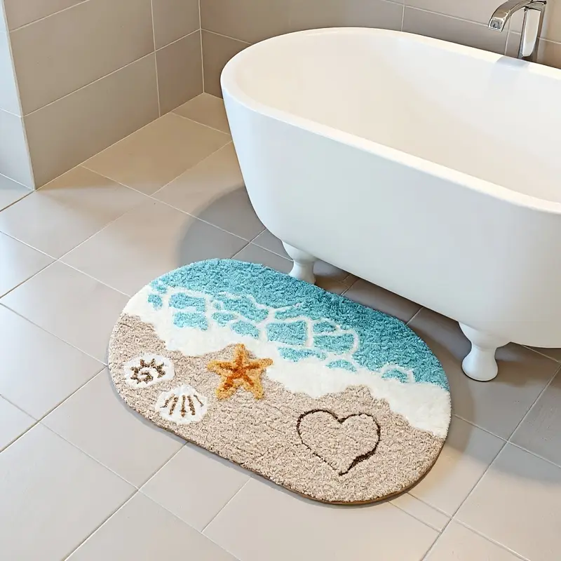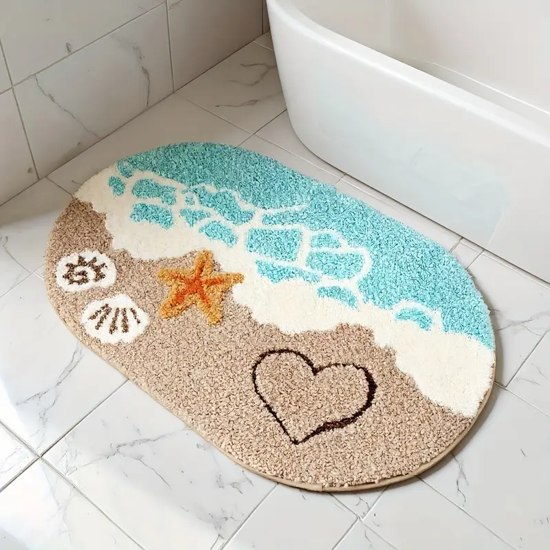 This bathroom carpet features smooth lines that echo the undulating waves, adding a modern artistic touch to your space. Whether it's the bathroom, kitchen or entrance hall, this carpet can add a layer of comfort and protection where you need it most. Its versatile coastal design enhances the appearance and atmosphere of your home, adding visual interest while also providing daily comfort.