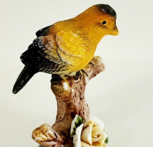 Oriole Type Bird Figurine Vintage 1990s White Rose Flower 4" Ceramic HGS2E