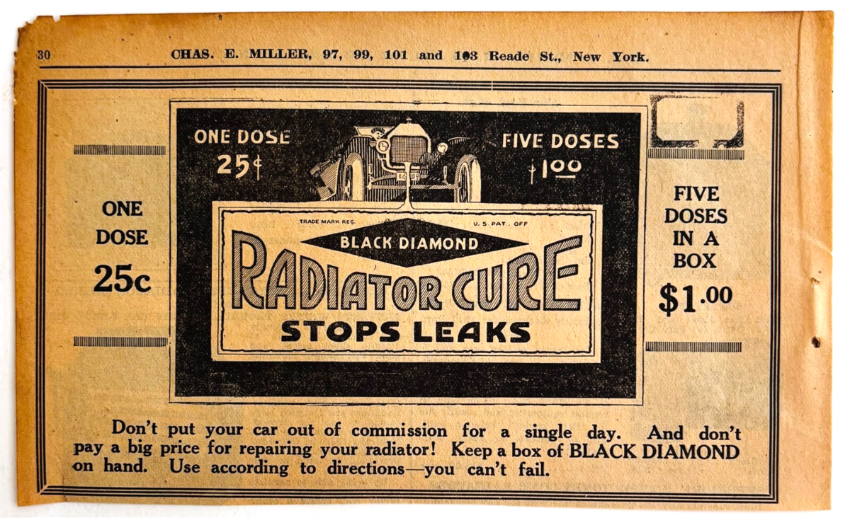 1917 Black Diamond Radiator Cure Advertisement Chas Miller Automobilia F14A
