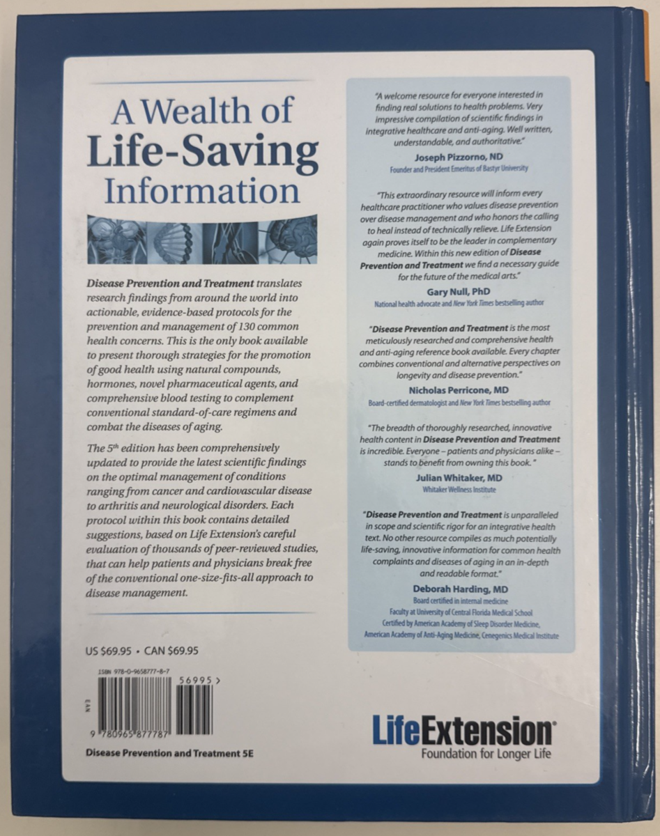 Disease Prevention and Treatment by Life Extension Foundation BOOK