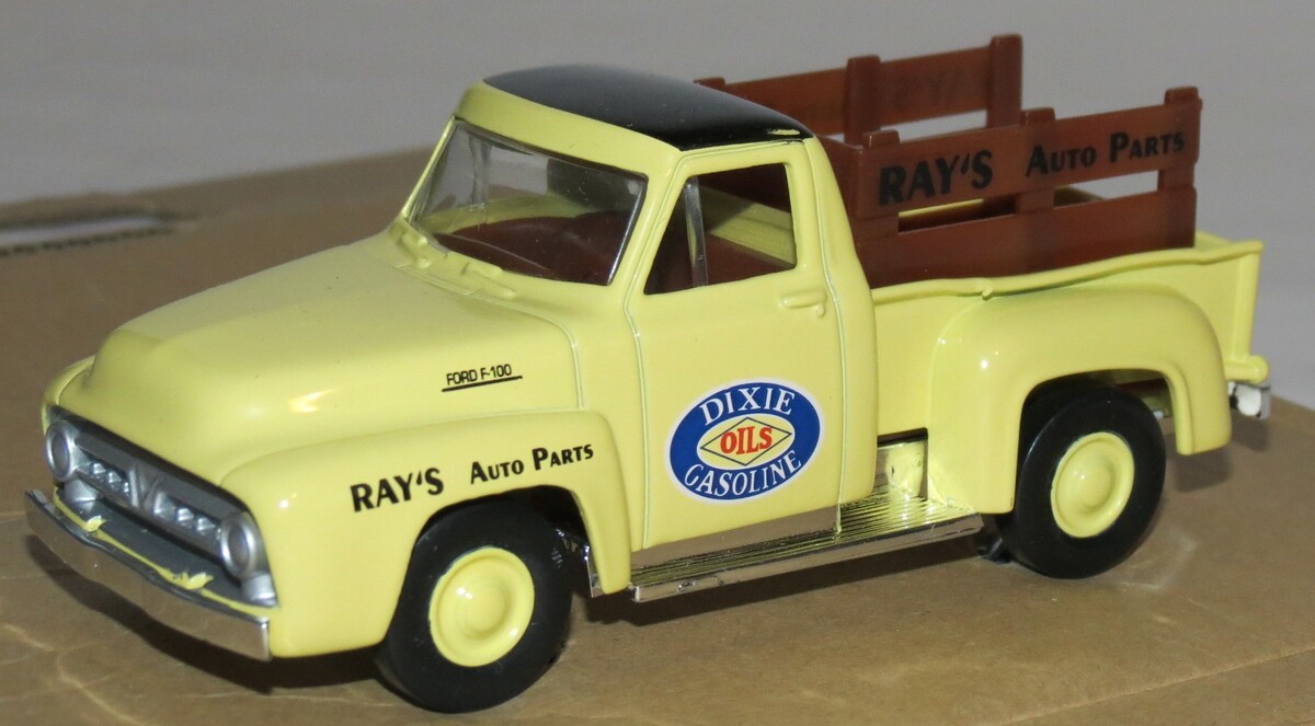 This 2003 Matchbox Collectibles 1:43 scale 1953 yellow Ford Pick-up features a Dixie Oil Gasoline logo. The detailed replica of a