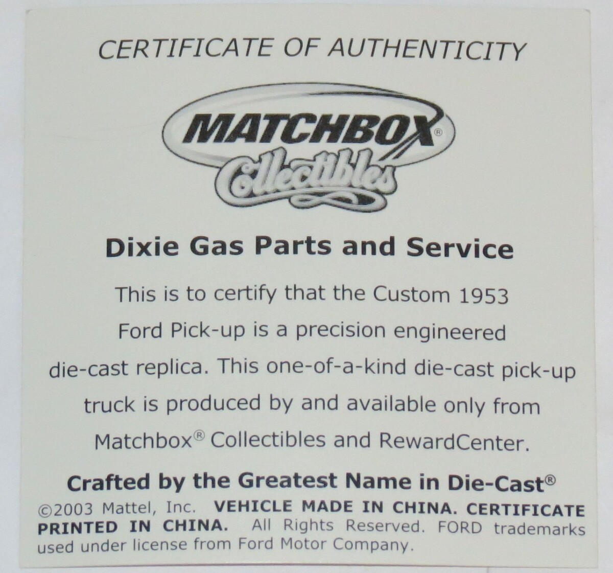 2003 Matchbox Collectibles Dixie Gas Parts & Service 1953 Ford Pick-up & COA