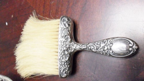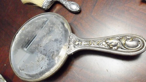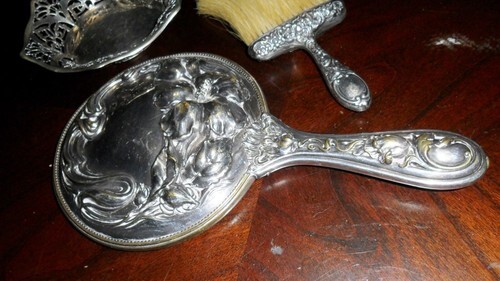 Silverplate vanity set of mirror, pin dish and brush ORIGINAL