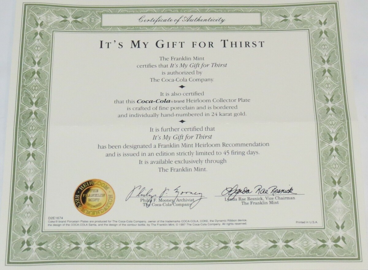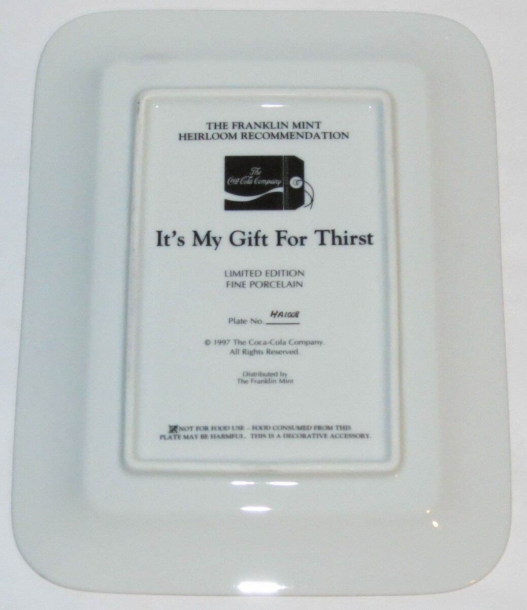1997 Franklin Mint Coca Cola "It's My Gift For Thirst" Collector Plate- NIB!
