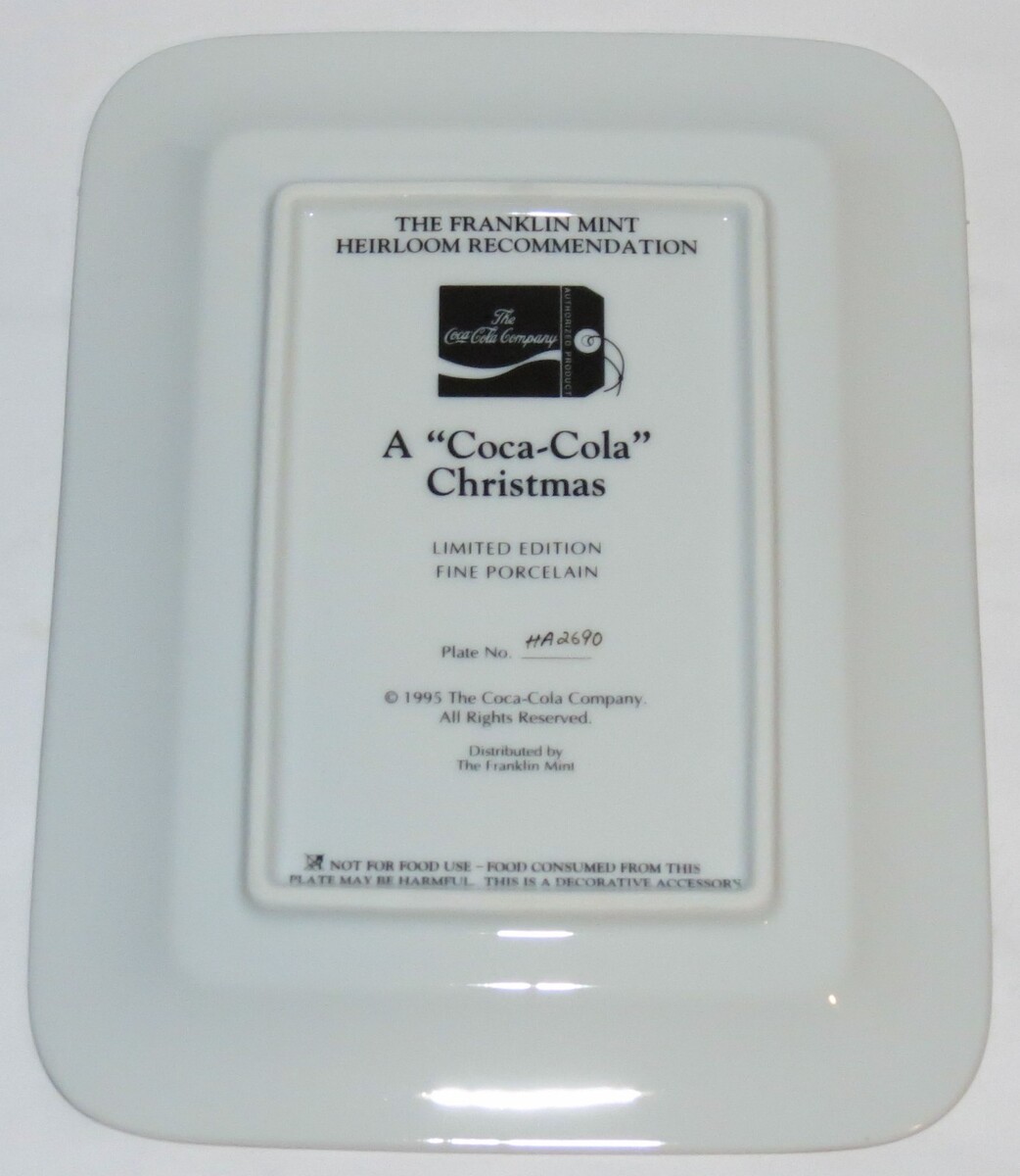 This 1995 Franklin Mint Coca Cola "A Coca-Cola Christmas" collector plate is a vintage decorative rectangular collectible featuring a