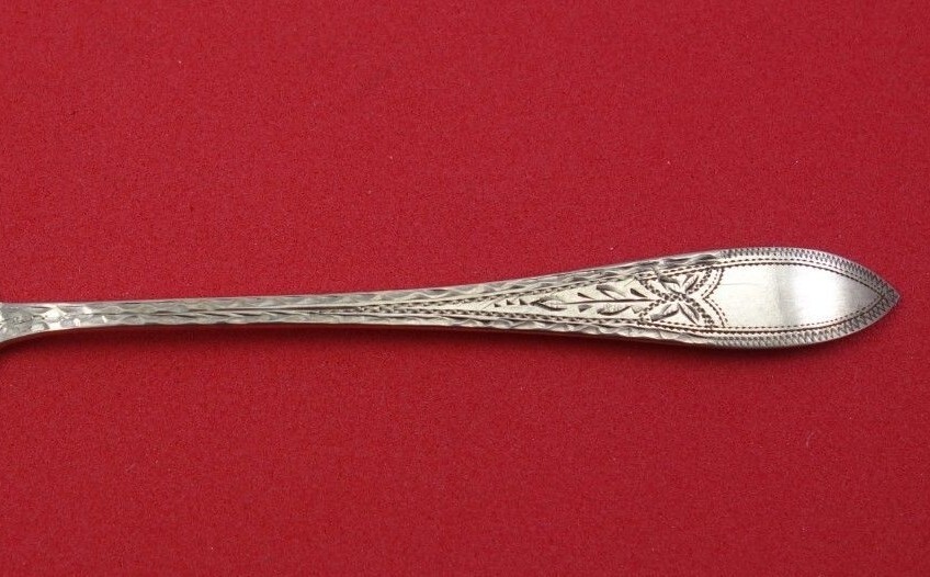 Sterling silver Demitasse Spoon bright-cut circa 1899 in the pattern Danish Sterling by Vilhelm Sorensen. It is not monogrammed and is in excellent condition.