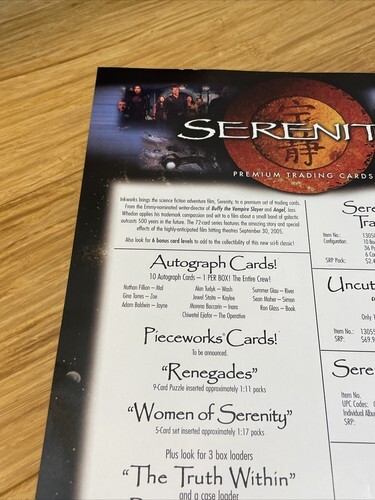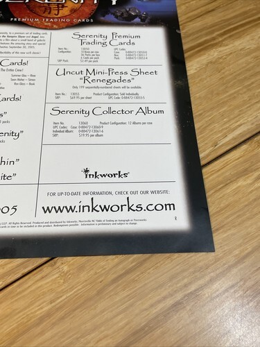 Inkworks 2005 Serenity Trading Card Promotional Poster KG JD