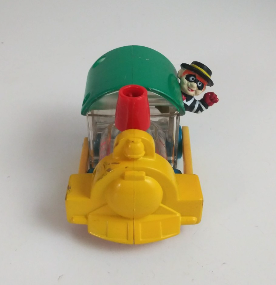 This is for a Vintage 1996 Hamburgler Green Top Clear Train McDonalds Toy.