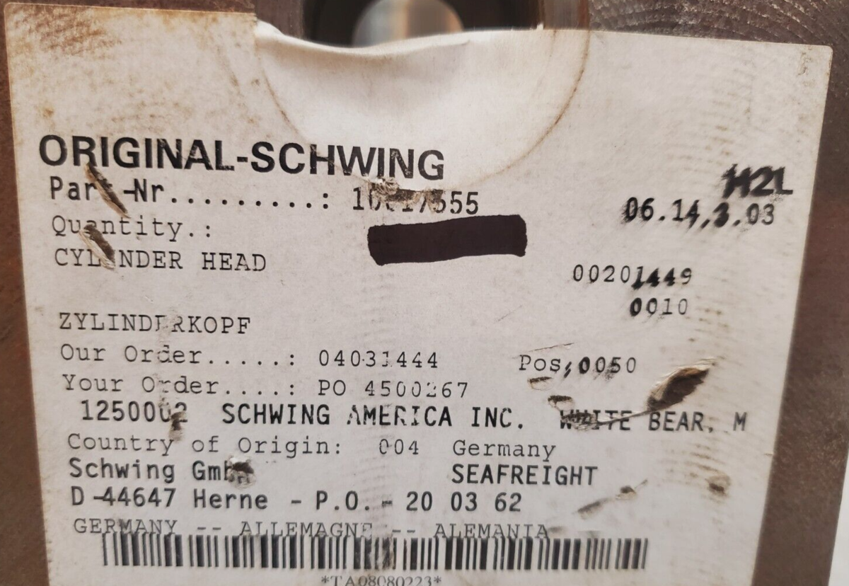 Schwing America INC Cylinder Head for Schwing Concrete Pump 10017555 | 00201449