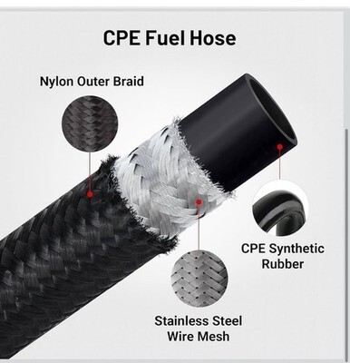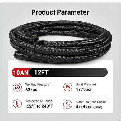 The Evil Energy 10AN 12ft Nylon Braided CPE Oil Gas Fuel Line Kit is a high-quality performance part designed for automotive applications. Made from durable materials like nylon, stainless steel, and aluminum alloy, this hose features a sleek black color and an anodized surface finish. It is suitable for placement on the rear, left, front, and right sides of vehicles and comes with a 1-year warranty for added peace of mind. Manufactured by Evil Energy in China, this fuel line kit is a reliable choice for enhancing the fuel system of your vehicle.