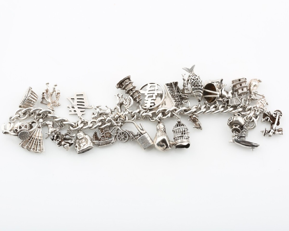 Sterling Silver Chinese New Year Charm Bracelet w/ 32 Total Charms 7" 106.5 g