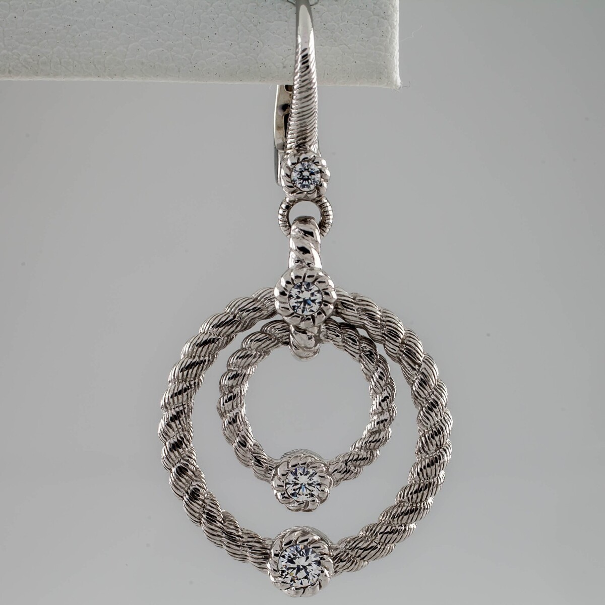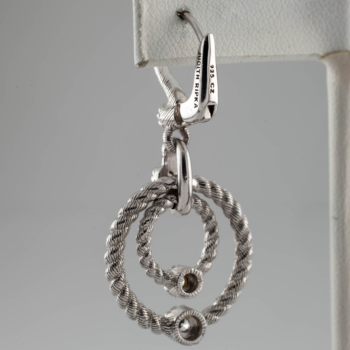 Judith Ripka Sterlingsilber Double-Circle Ohrhänger W / Cz Einzelner Ohrring